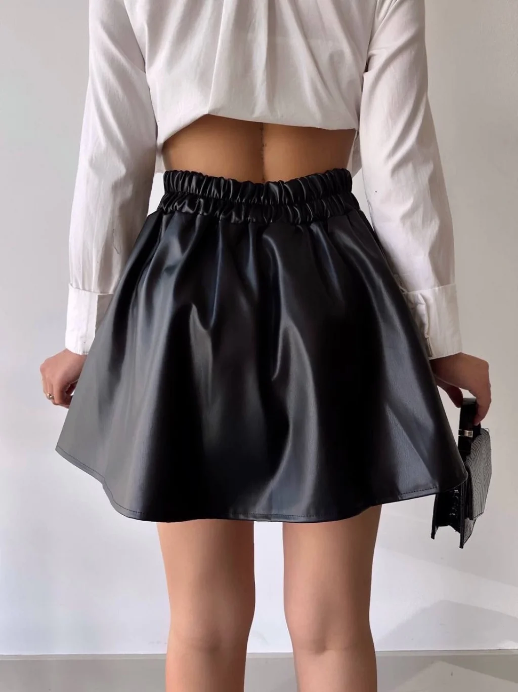 Cep detaylı oval kapaklı deri etek siyah h240048