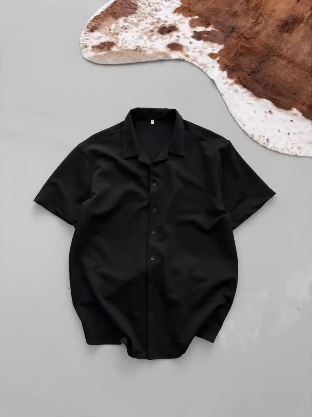 Erkek İki İplik Kumaş Dijital Baskılı Gömlek - Siyah