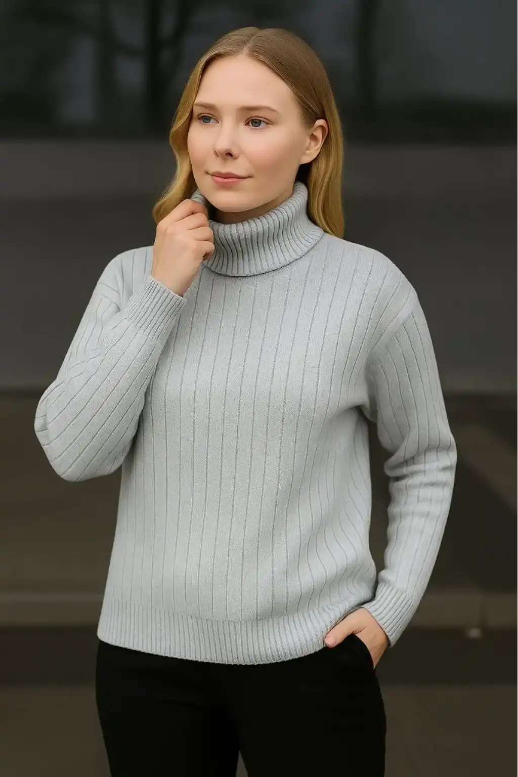 Kadın Yarım Boğaz Triko Kazak yumuşak dokulu Pamuklu ince Dokuma, uzun kollu Rahat Regular kalıp - Gri