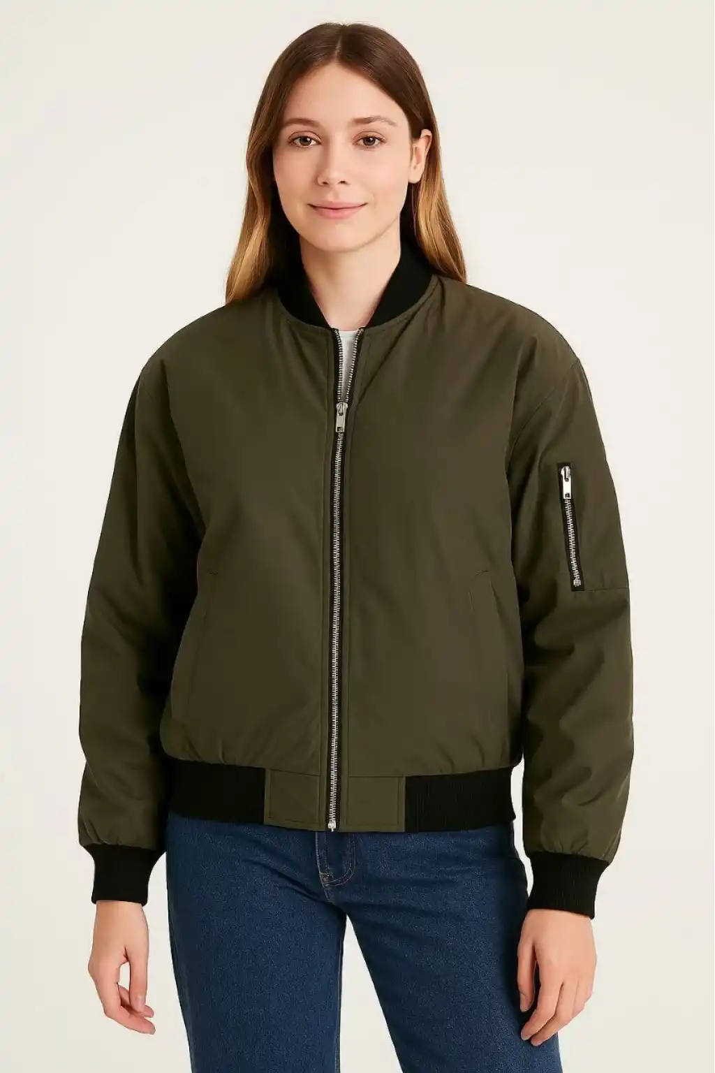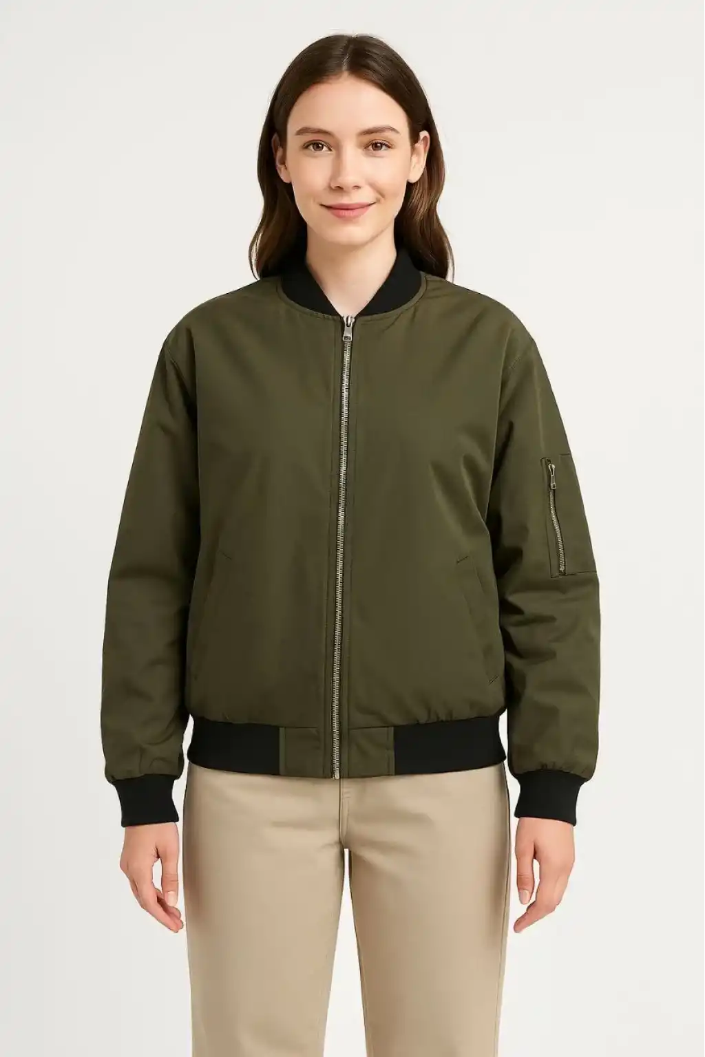 Kadın Bomber Mont Ceket – Fermuarlı, Kapitone İçi Astarlı, Su İtici Kumaş, Regular Fit, Yandan Cepli, Günlük Bahar & Kış Şık Rahat Stil - Haki