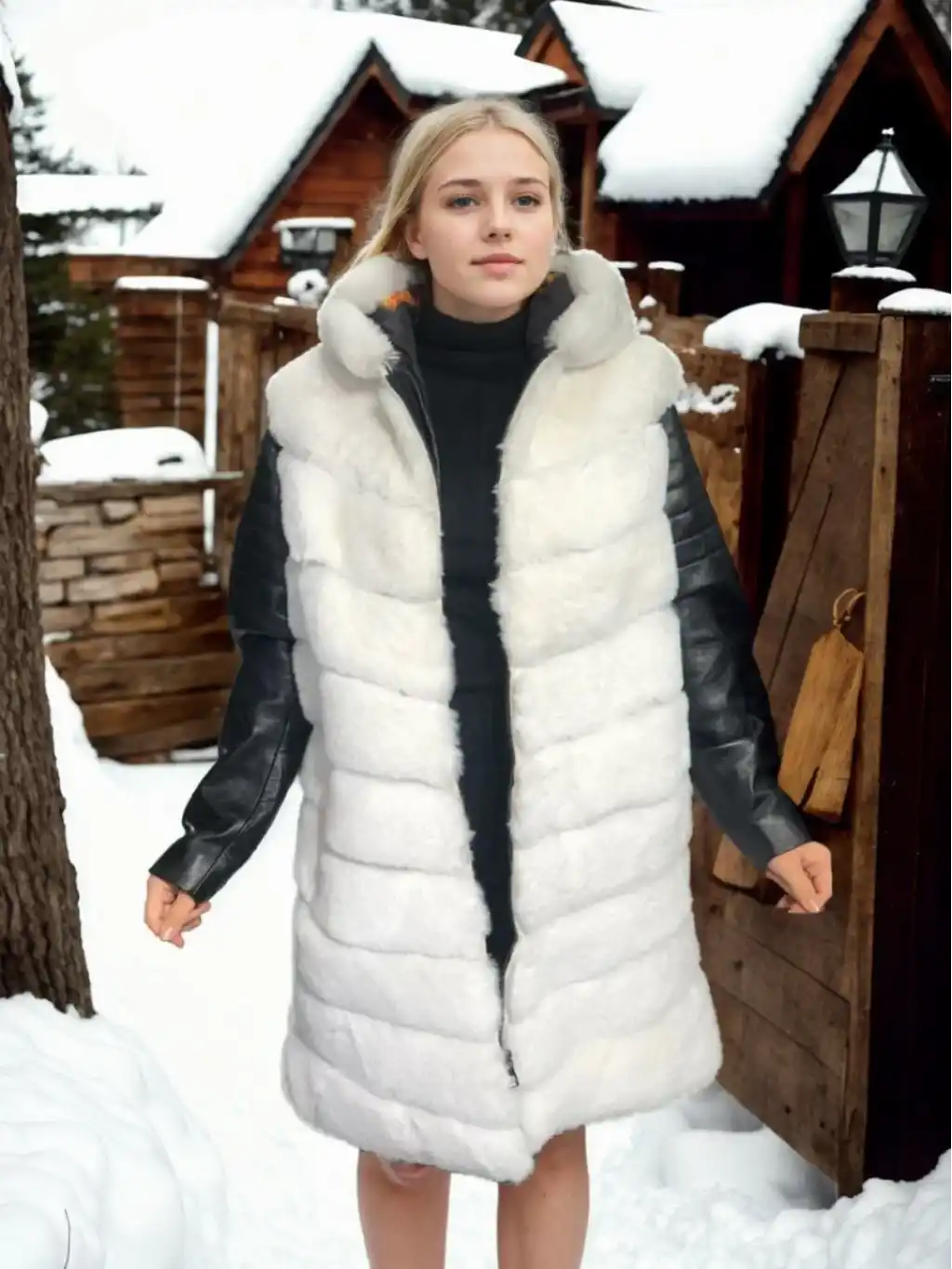 Kadın Kolsuz Hakiki Deri Kürk - Beyaz