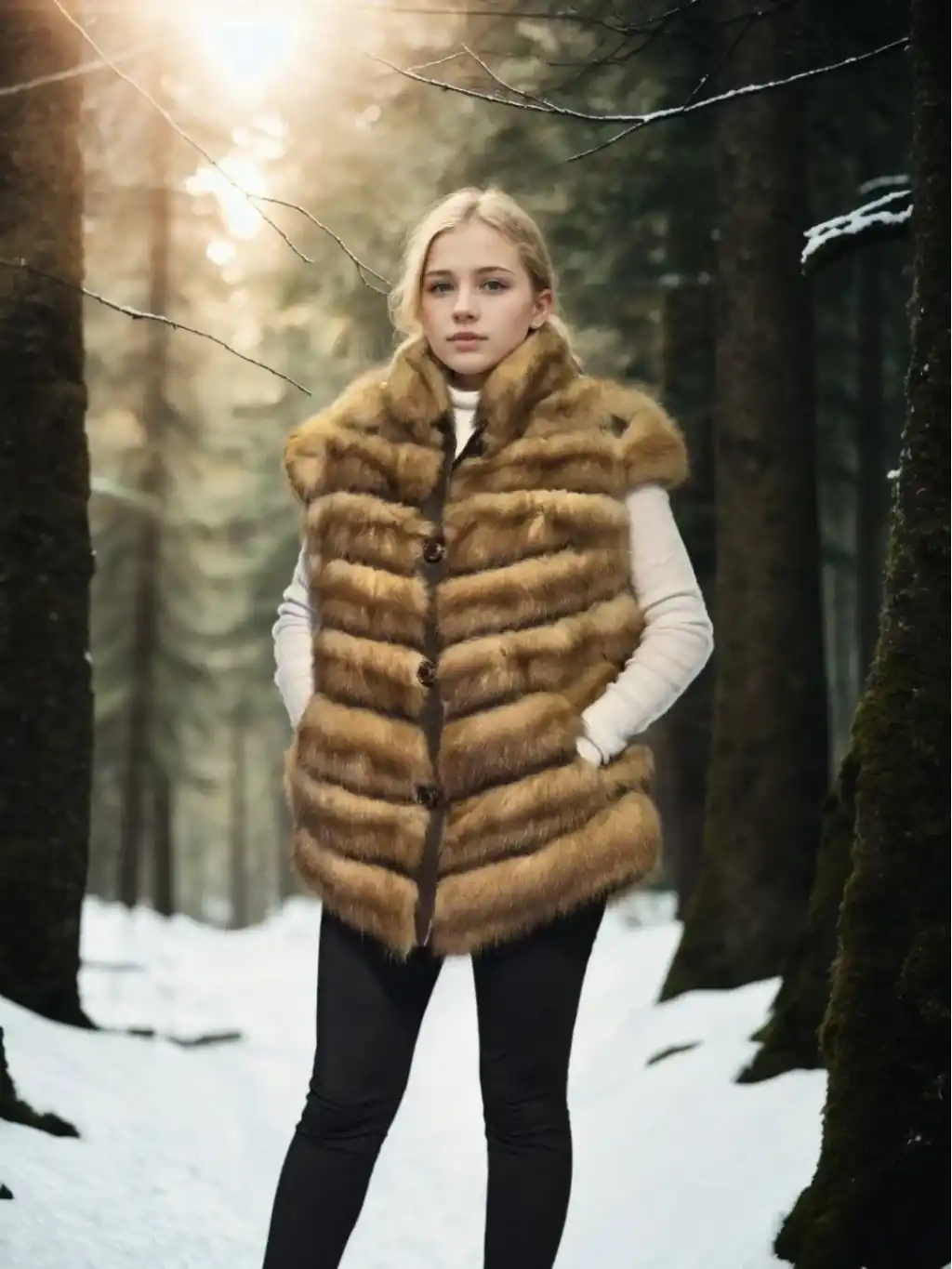 Kadın Kolsuz Hakiki Kürk - Kahve