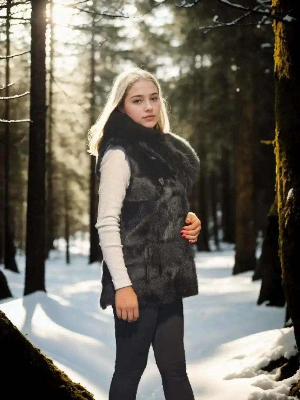 Kadın Kolsuz Hakiki Kürk - Siyah