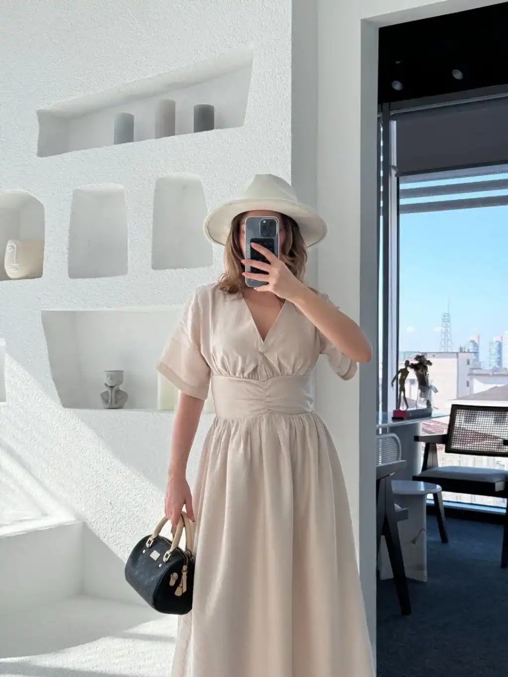 Kısa Kollu Uzun Elbise - Kırık Beyaz