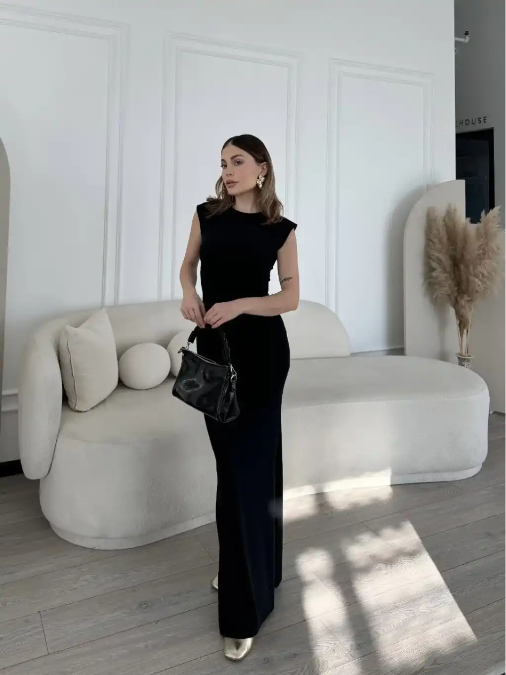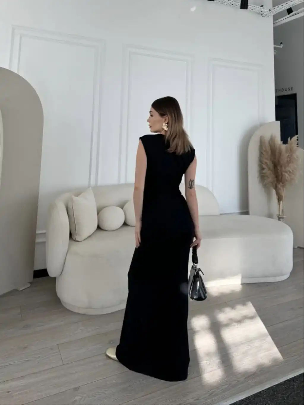 Sırt Dekolteli Kolsuz Uzun Elbise - Siyah