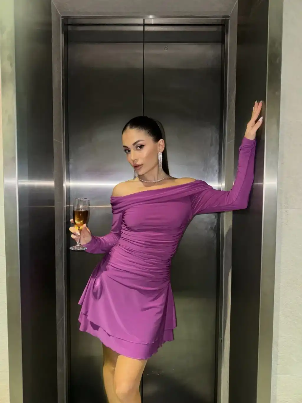 Sırt Dekolteli Kolsuz Uzun Elbise - Mürdüm