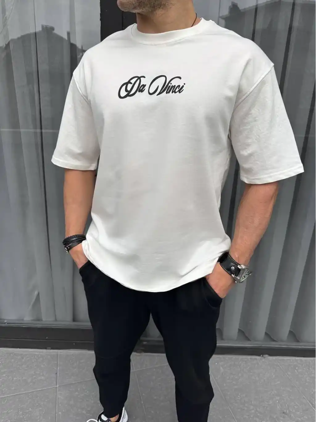 Unisex Baskılı Oversize T-Shirt - Beyaz