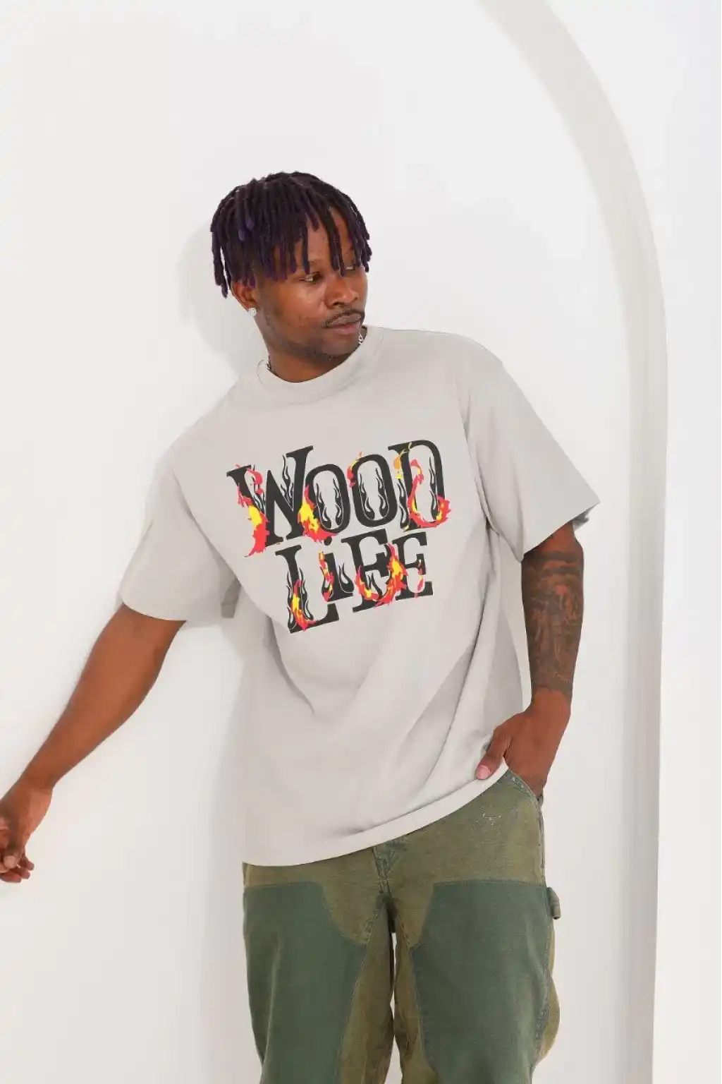 Unisex Baskılı Oversize T-Shirt - Gri