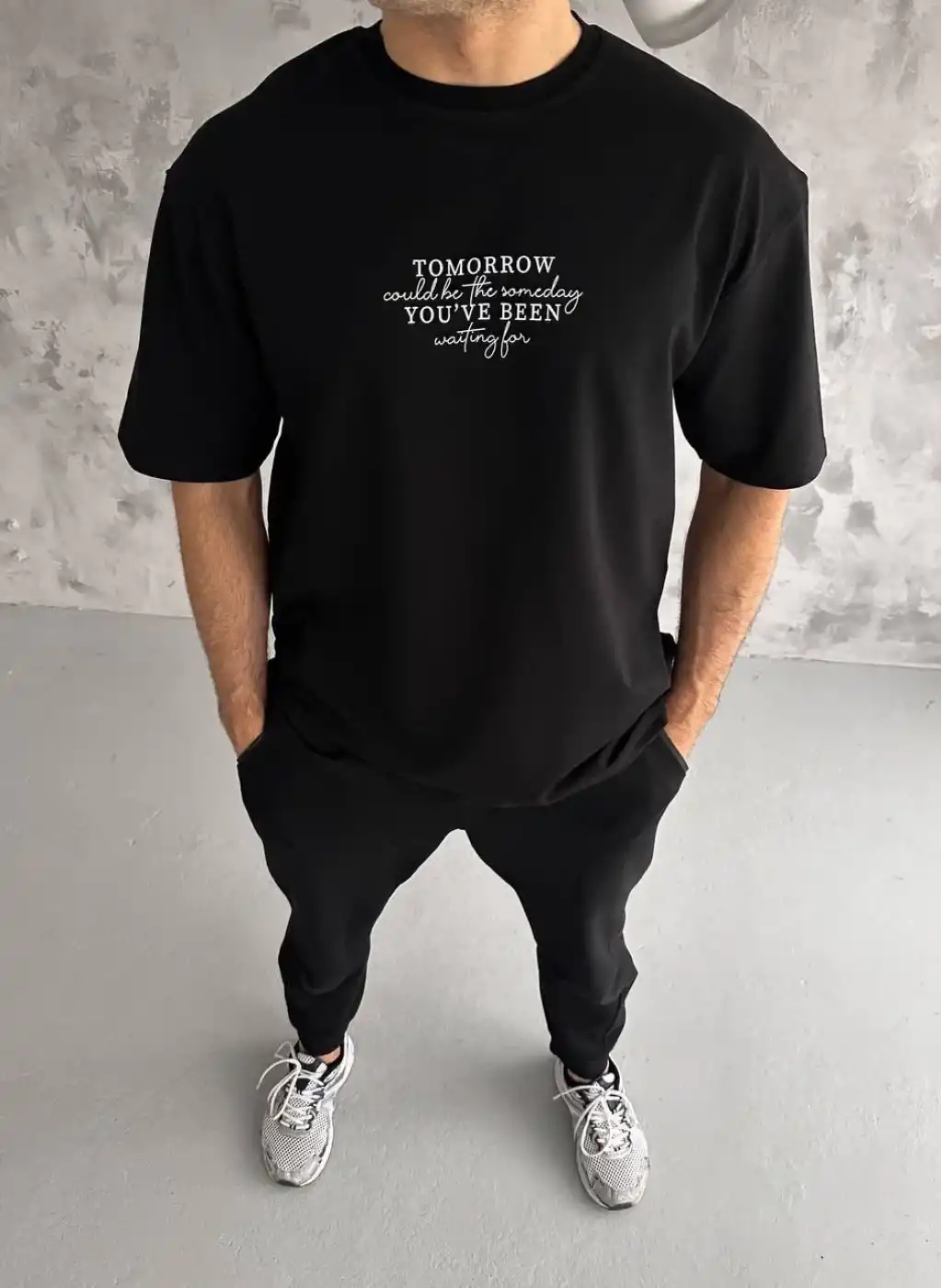 Büyük Beden Erkek "Whatever" Baskılı Tişört, Oversize Erkekler İçin Yaz Modası Kısa Kollu Tişörtler - Siyah
