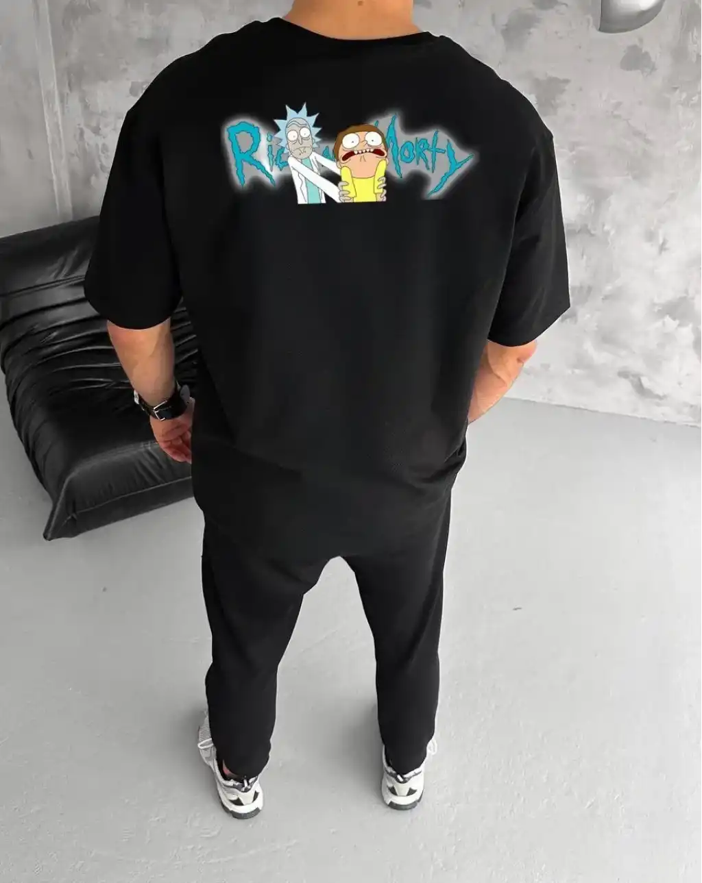 Benzersiz Sırt Baskılı Erkek Sokak Stili Bol Tişört - Nefes Alabilir Polyester, Makinede Yıkanabilir - Siyah