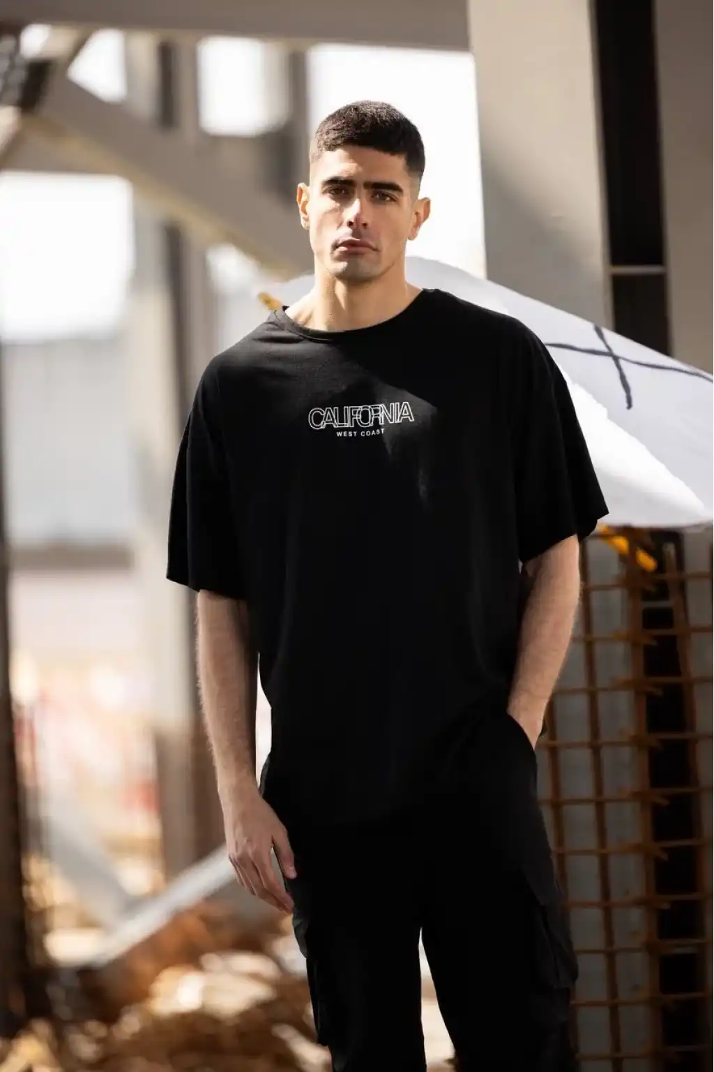 Benzersiz Sırt Baskılı Erkek Sokak Stili Bol Tişört - Nefes Alabilir Polyester, Makinede Yıkanabilir - Siyah