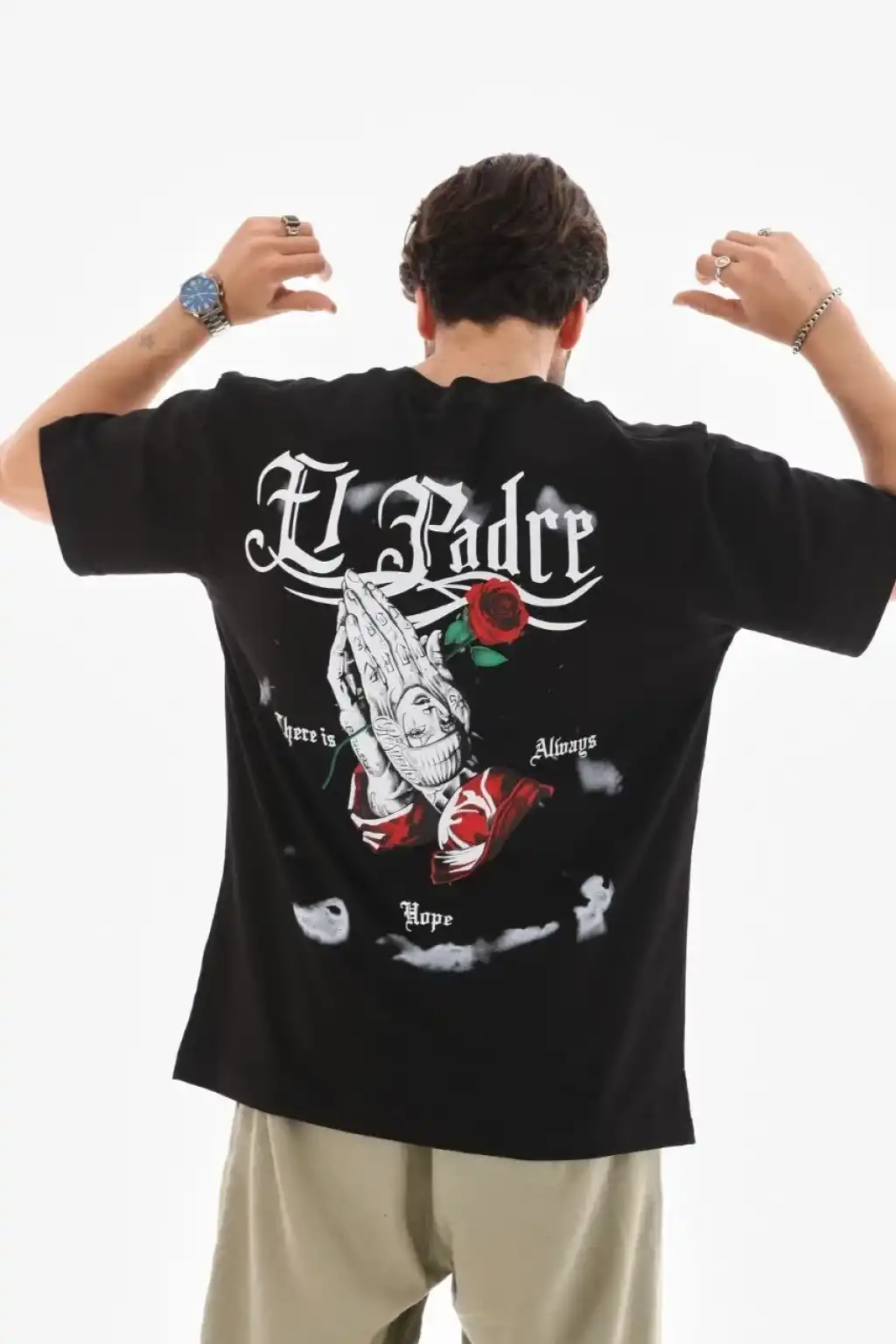 Erkek Sırt Baskılı Oversize T-shirt - Bej