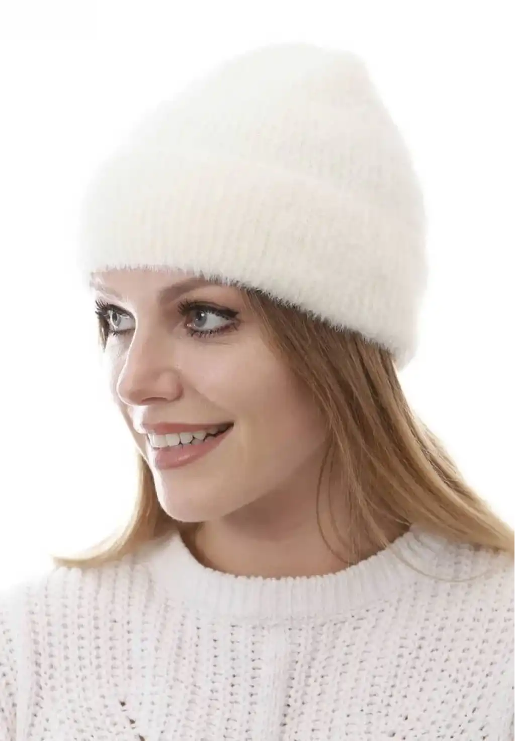 Kadın Dokuma Triko Bere - Beyaz