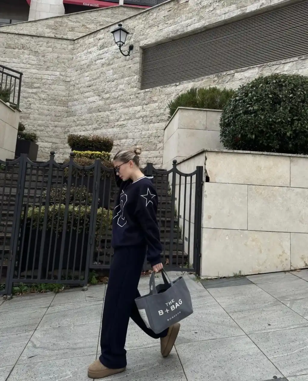 Osy Modal Yumuşak Dokulu Kumaş Bisiklet Yaka T-shirt Bol paça Pantalon ikili Takım -Saks Mavi
