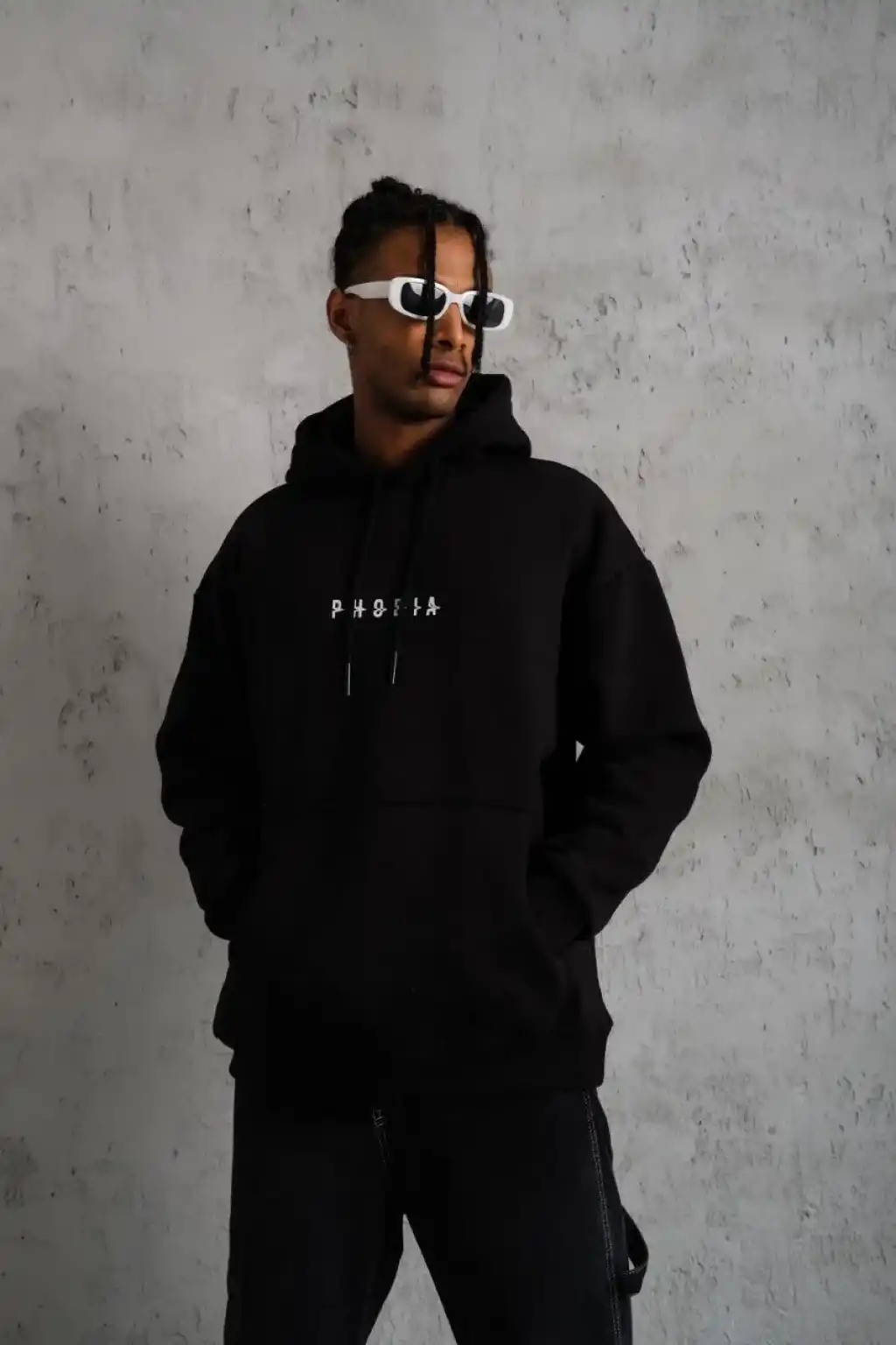 Erkek Double Oversize Kapüşonlu Sweatshirt 3 İplik Pamuklu Göğüs Nakışlı Premium Kalite – Siyah