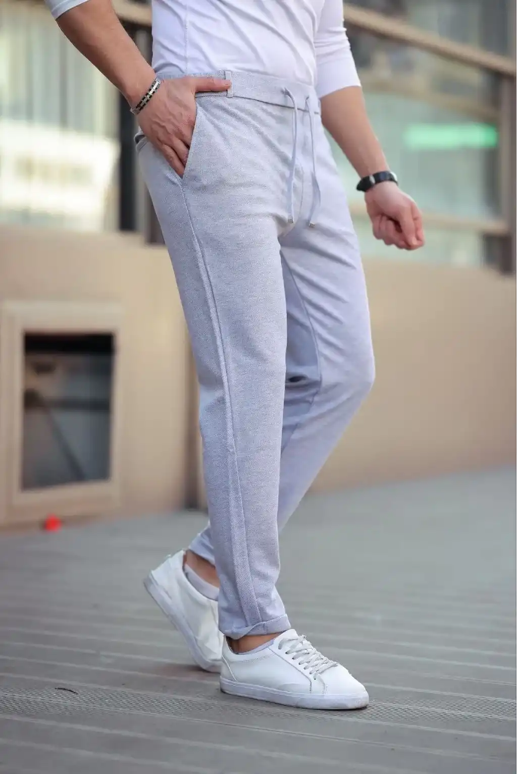 Erkek Diagonel Mikro dokulu Cepli Beli Lastilki Pantolon - Gri