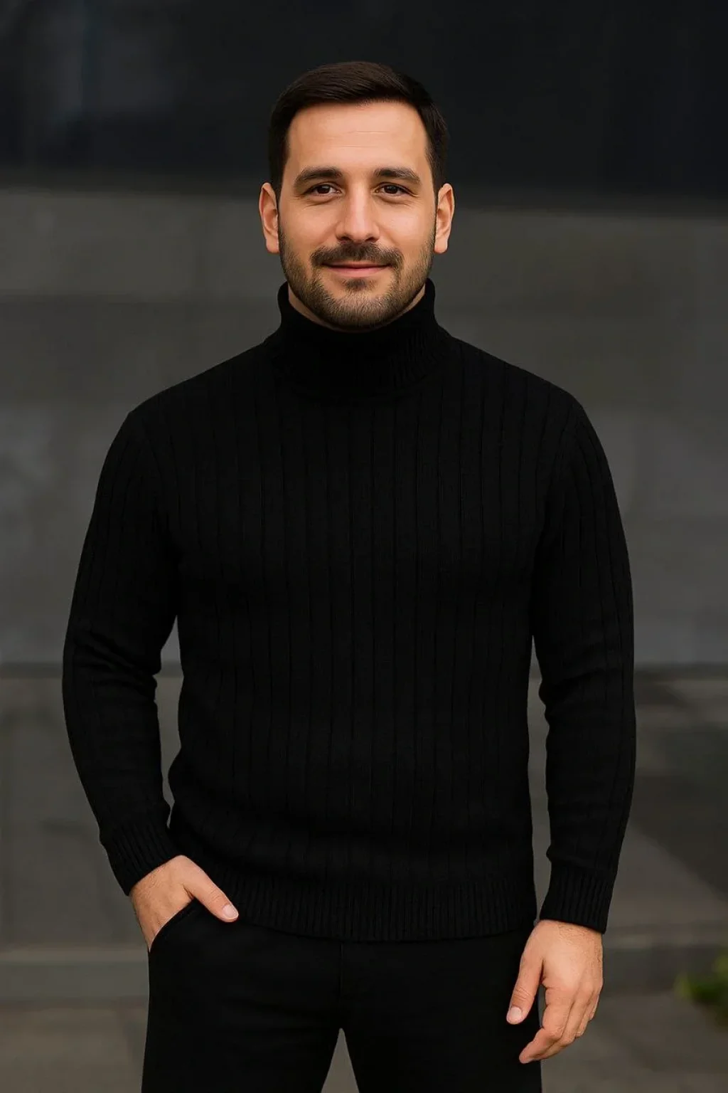 • Erkek Fitilli Triko Kazak 3'lÜ Set Bebek Mavisi Bej Siyah Regular Balıkcı Yaka Tam Boğazlı Triko Seti Modeli Kazak