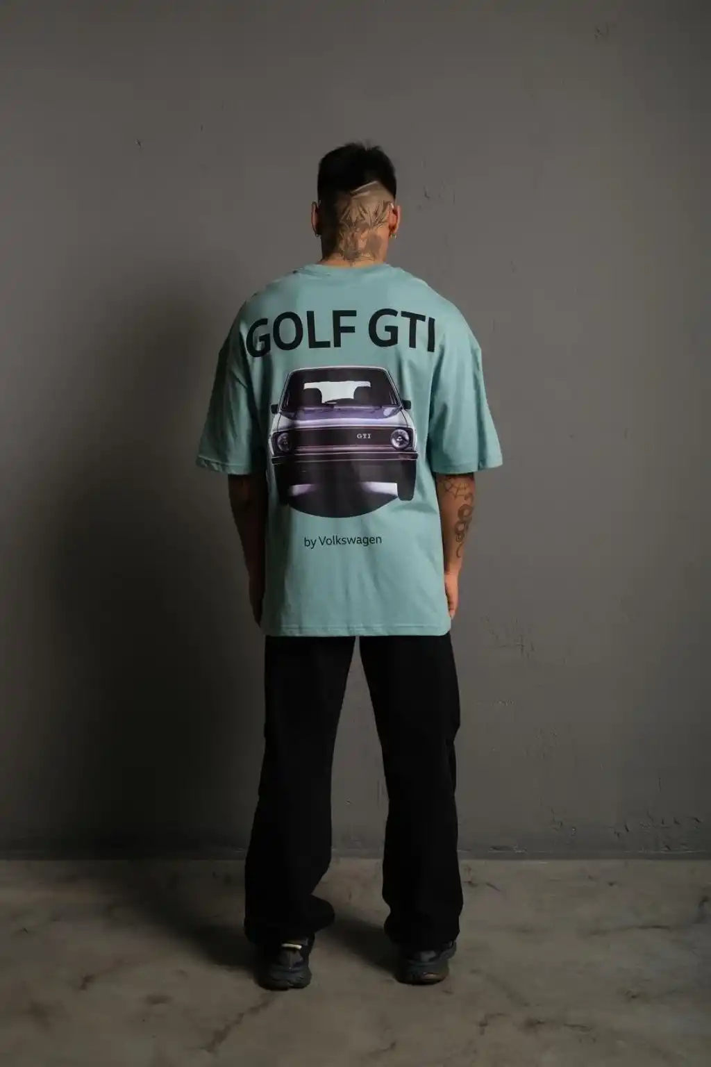 Erkek Oversize Baskılı Tişört – Golf GTI Retro Araba Desenli, Ön & Arka Dijital Baskı, Sokak Modası Stil - Mint Yeşili