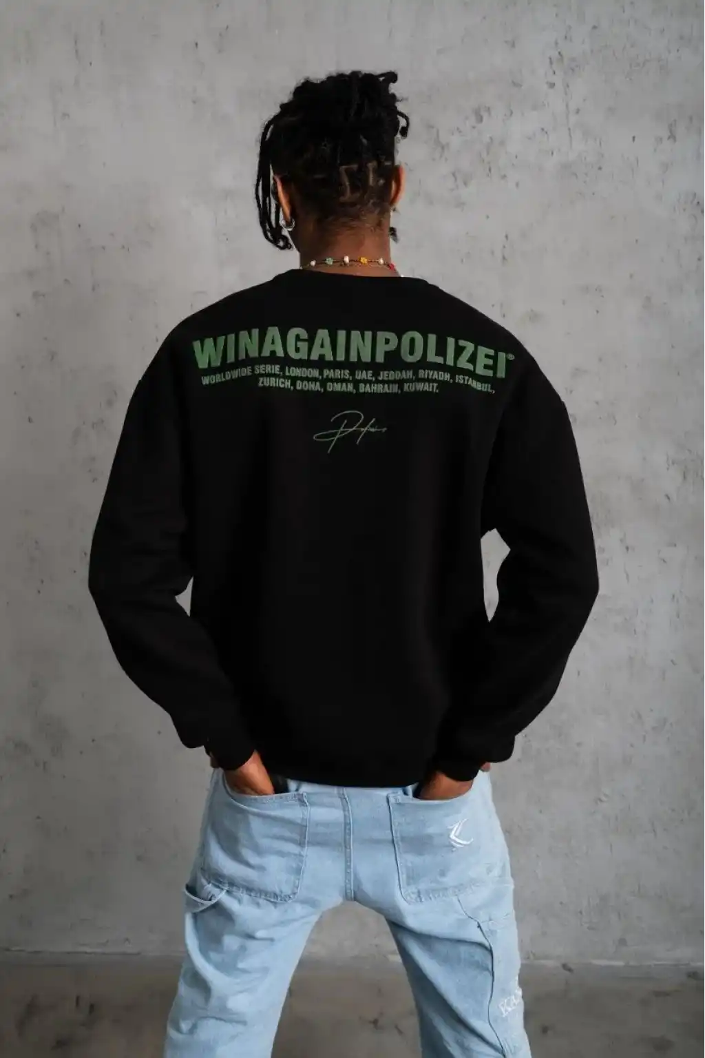 Erkek Oversize Sweatshirt – Siyah Renk | Ön ve Sırt Baskılı, Üç İplik İçi Pamuklu Kumaş, Rahat Kalıp, Ribanalı Kışlık Sweat | Winagain Polizei Serisi - Siyah