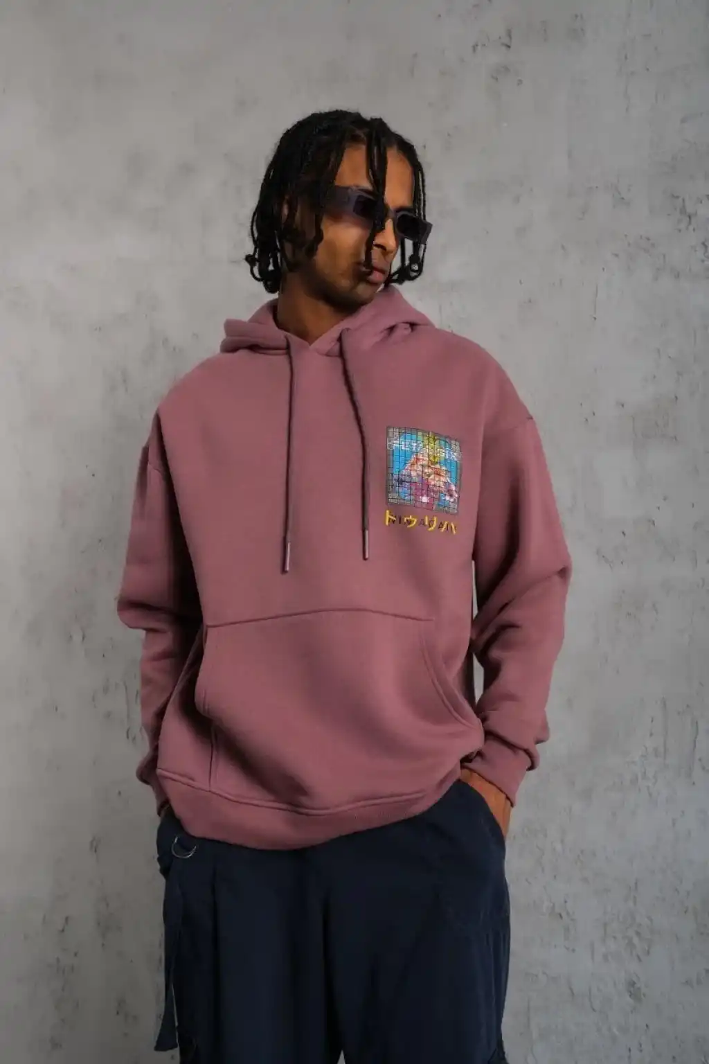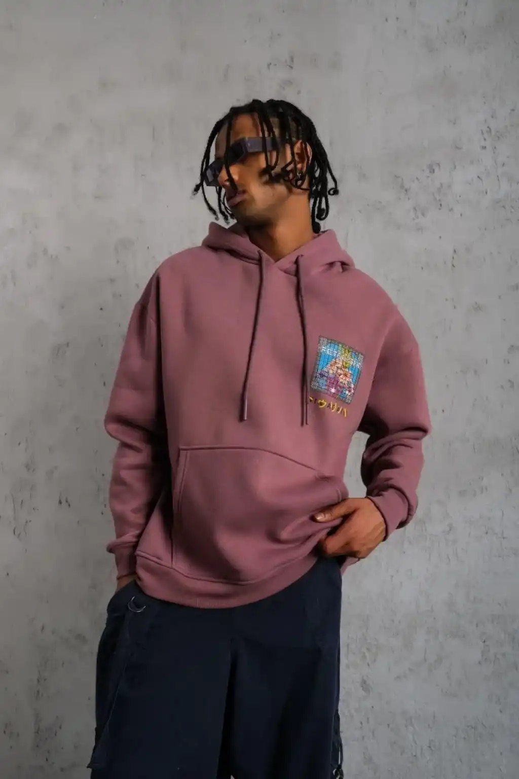 • Erkek Patel Six Baskılı Kapüşonlu Sweat - Gül Kurusu
