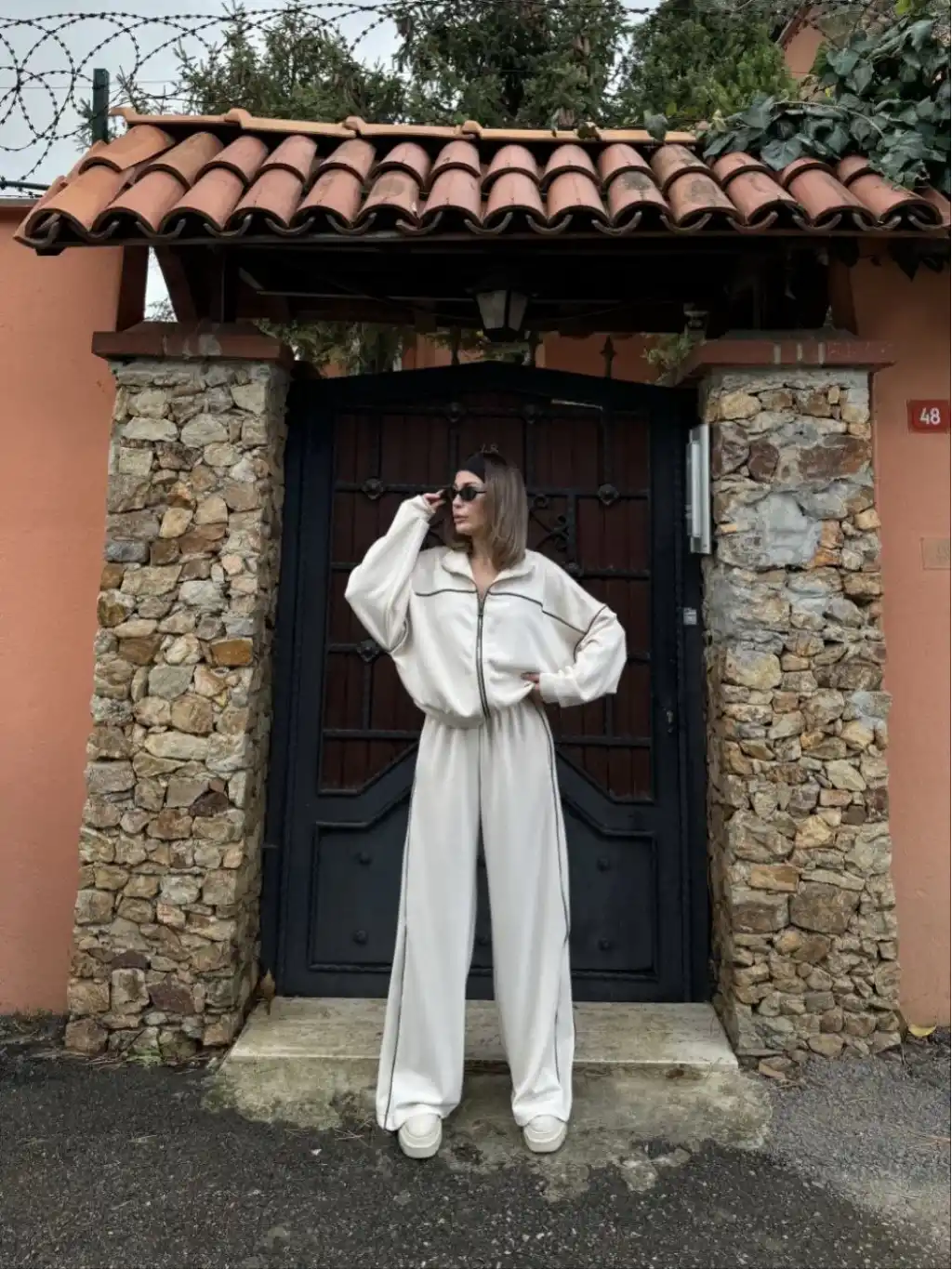 Fermuarlı Eşofman Pantolon İkili Takım - Beyaz