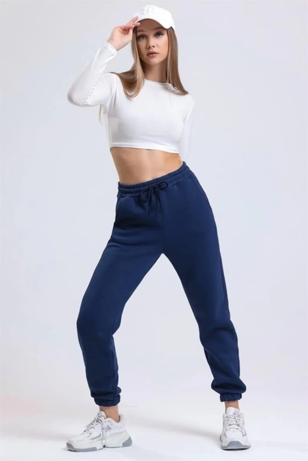 3 iplik şardonlu paça lastikli eşofman lacivert is001