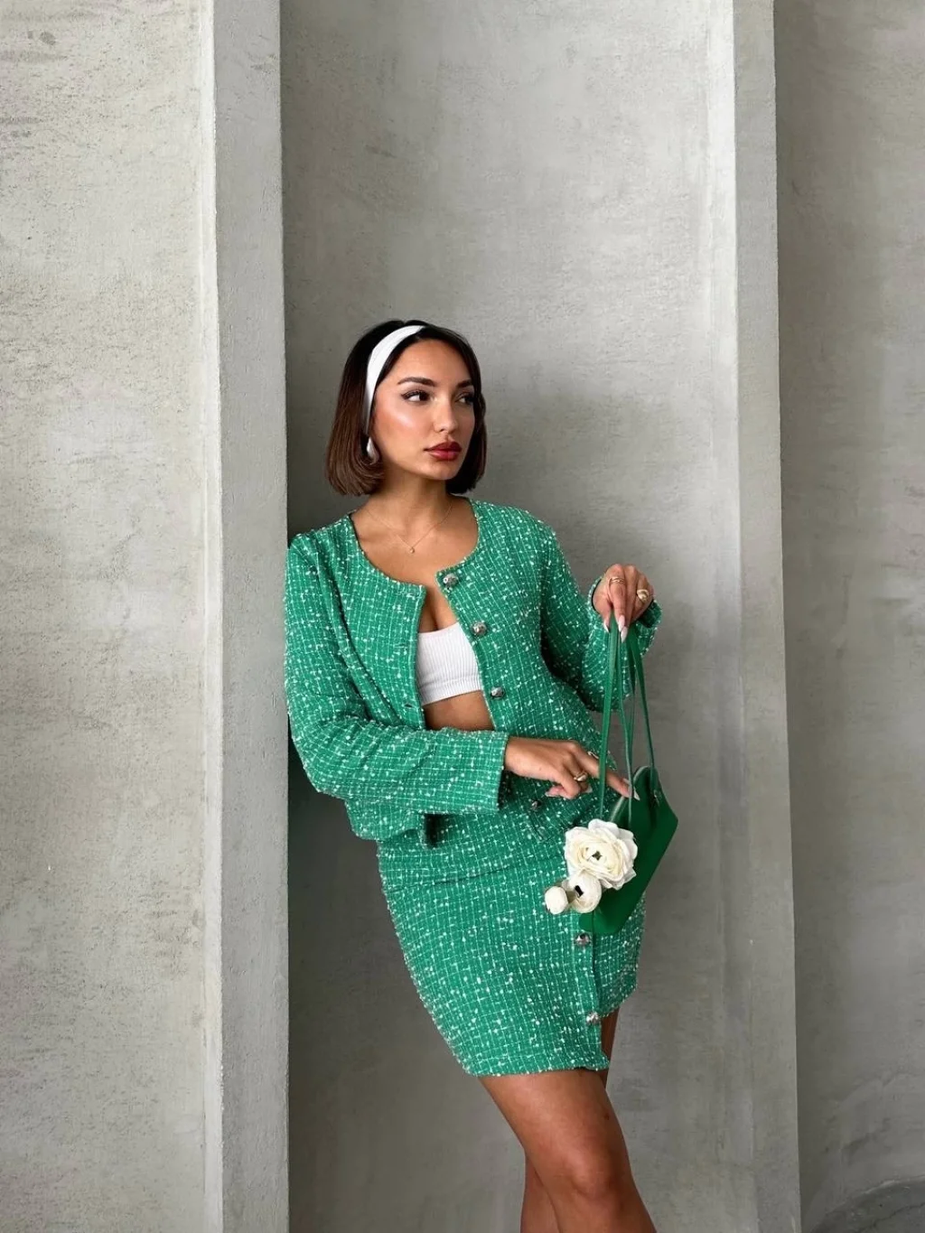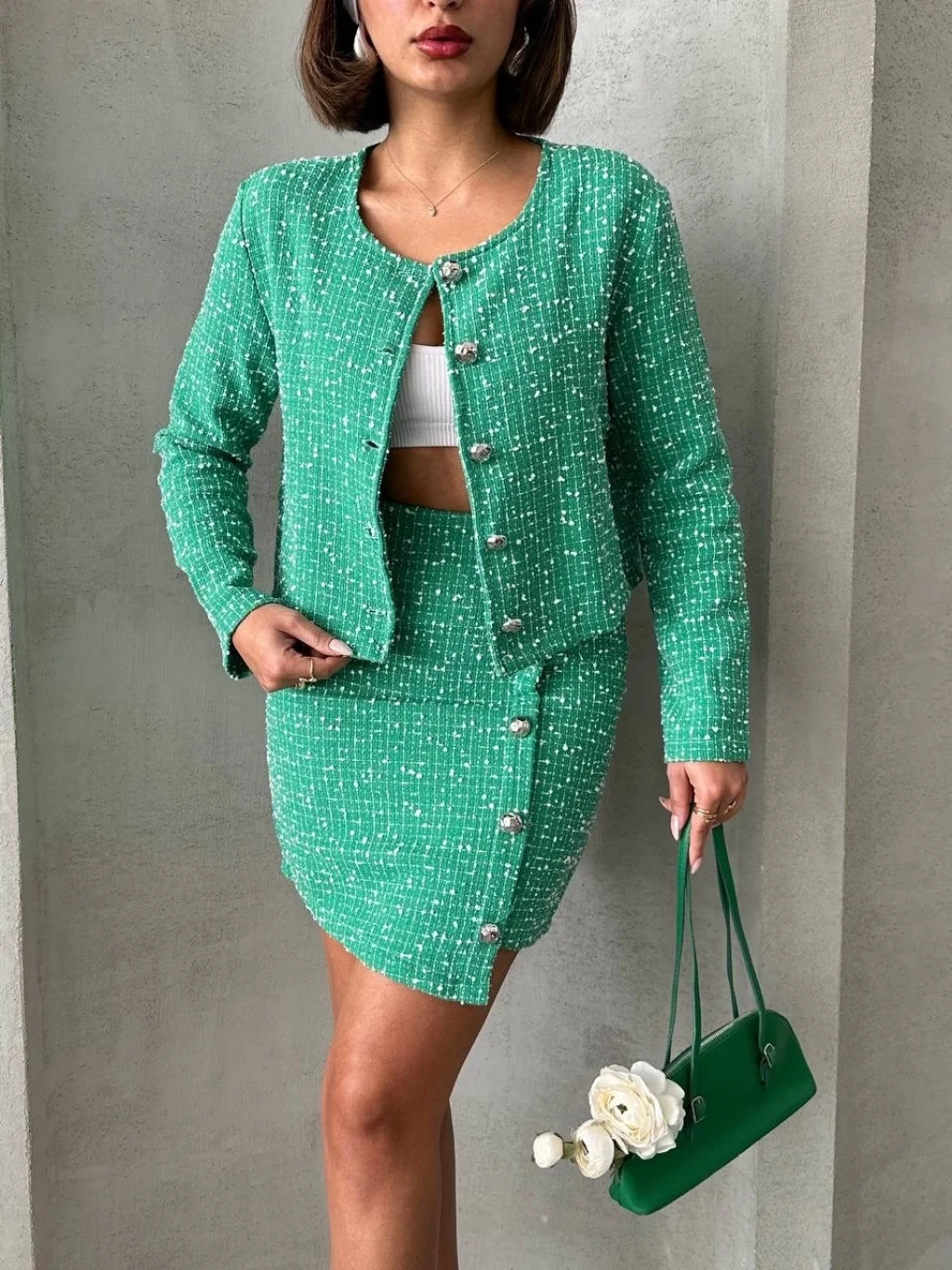 Gömlek yaka kaplama düğmeli takım petrol yeşili st265866