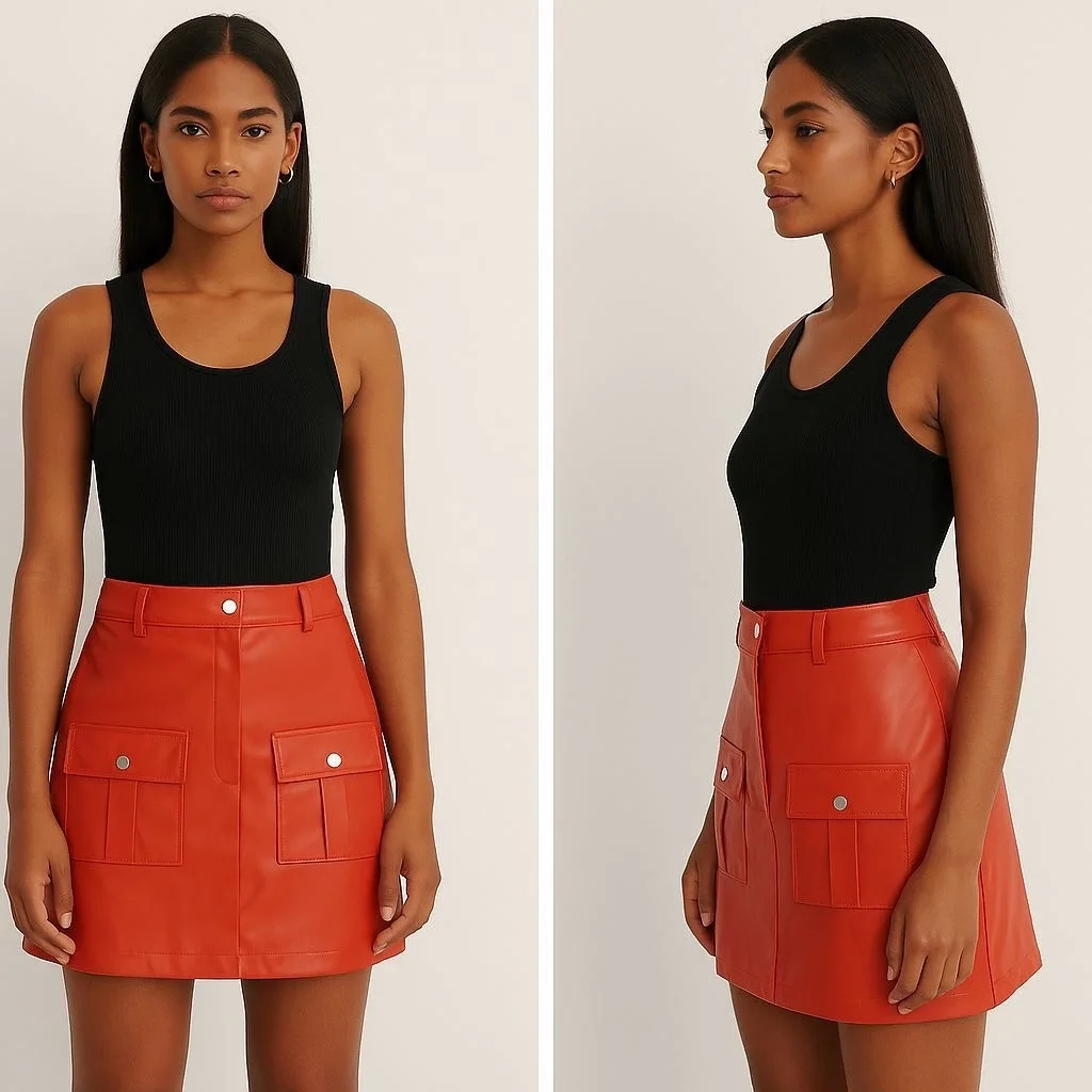 Cep detaylı oval kapaklı deri etek siyah h240048