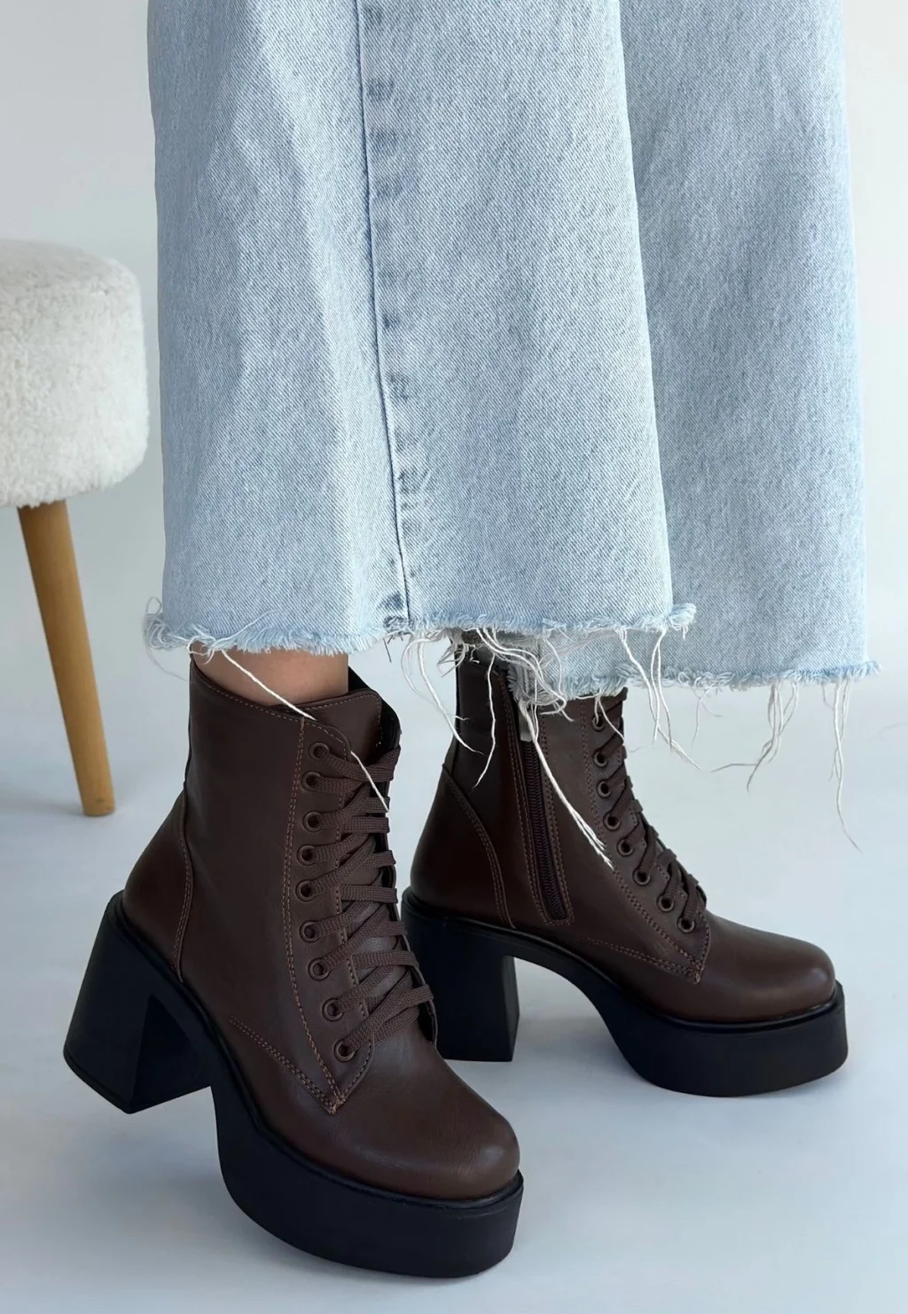 Linma Kahverengi Cilt Bağcıklı Topuklu Bot