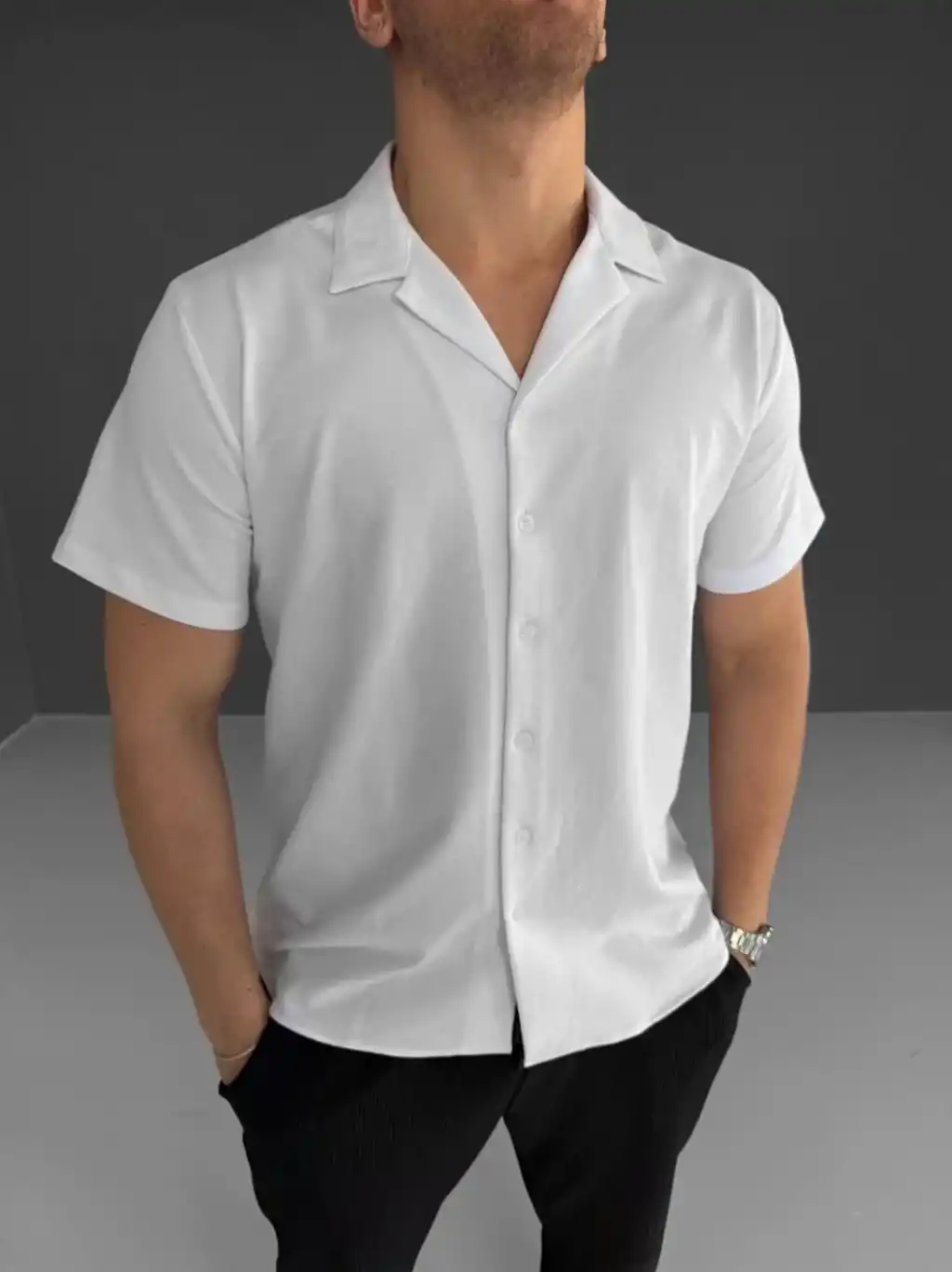 İki İplik Kumaş Baskılı Gömlek - Beyaz
