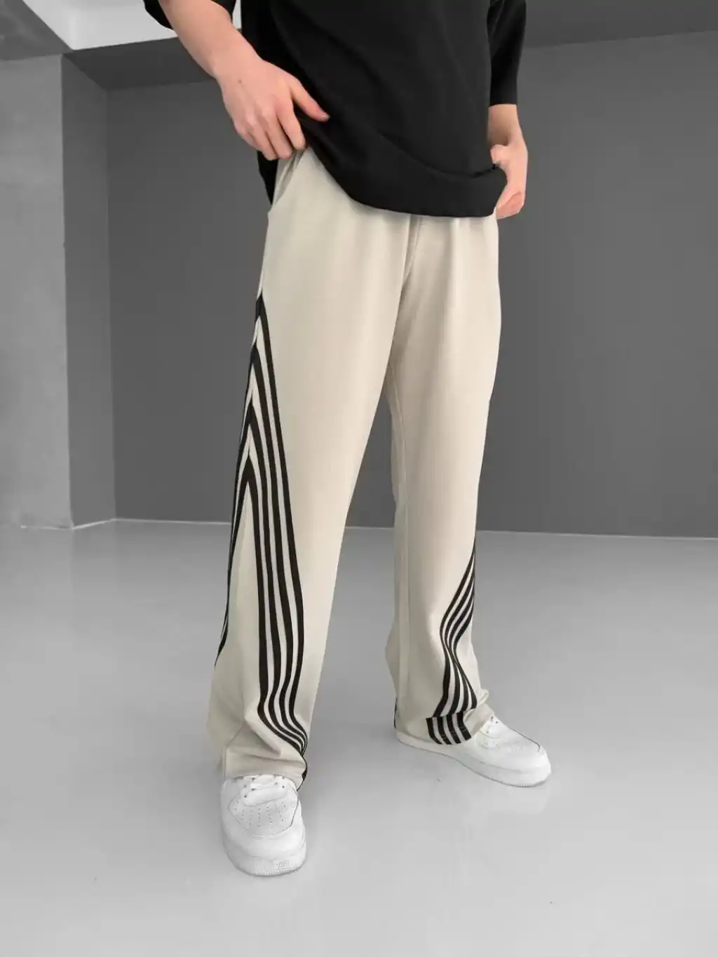 Erkek Yandan Şeritli Boru Paça Eşofman Altı 3 iplik Pamuklu Eşofman - Gri