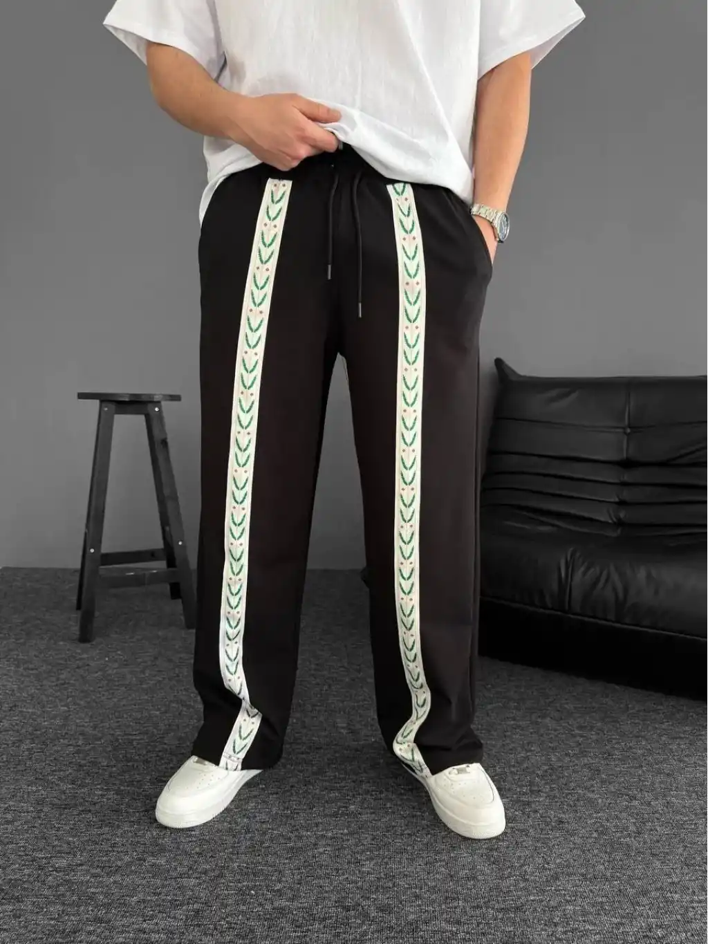 İki İplik Kumaş Şeritli Alt Esofman - Siyah