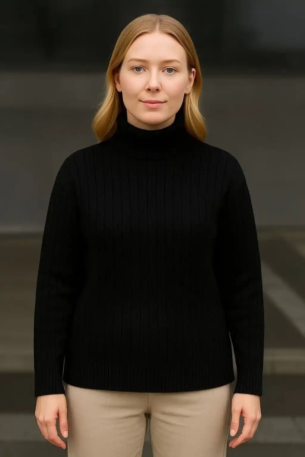 Kadın Yarım Boğaz Triko Kazak yumuşak dokulu Pamuklu ince Dokuma, uzun kollu Rahat Regular kalıp - Siyah