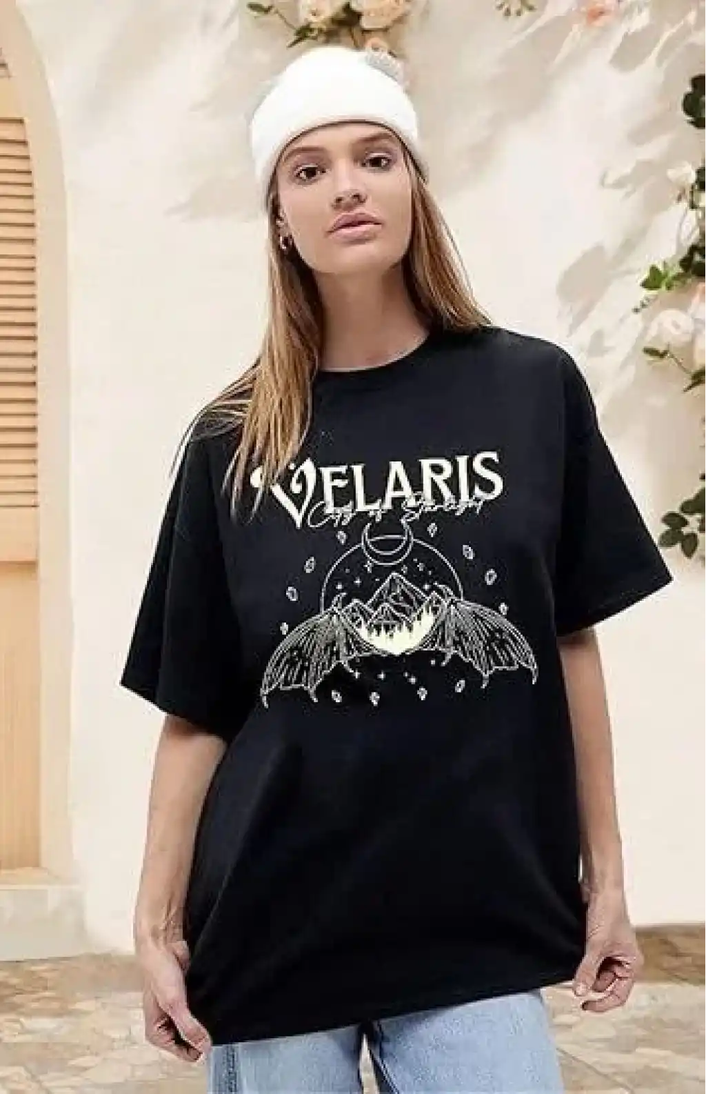 AICG Ön Arka Baskılı Bisiklet Yaka Kadın Oversize Bisiklet Yaka T-shirt - Siyah