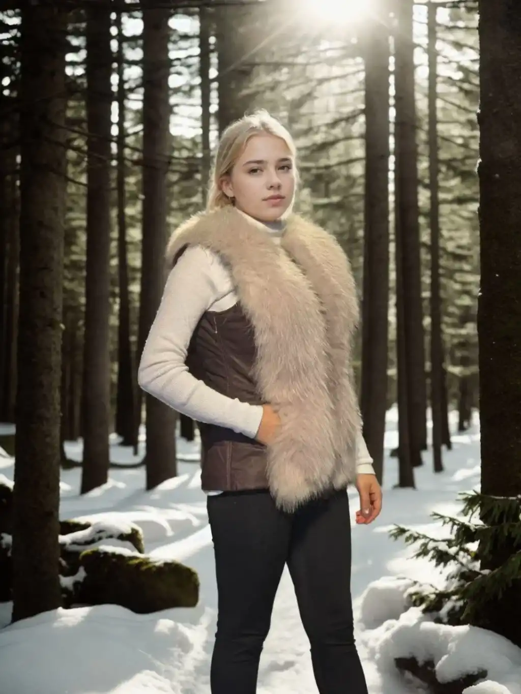 Kadın Kolsuz Hakiki Kürk - Kahve