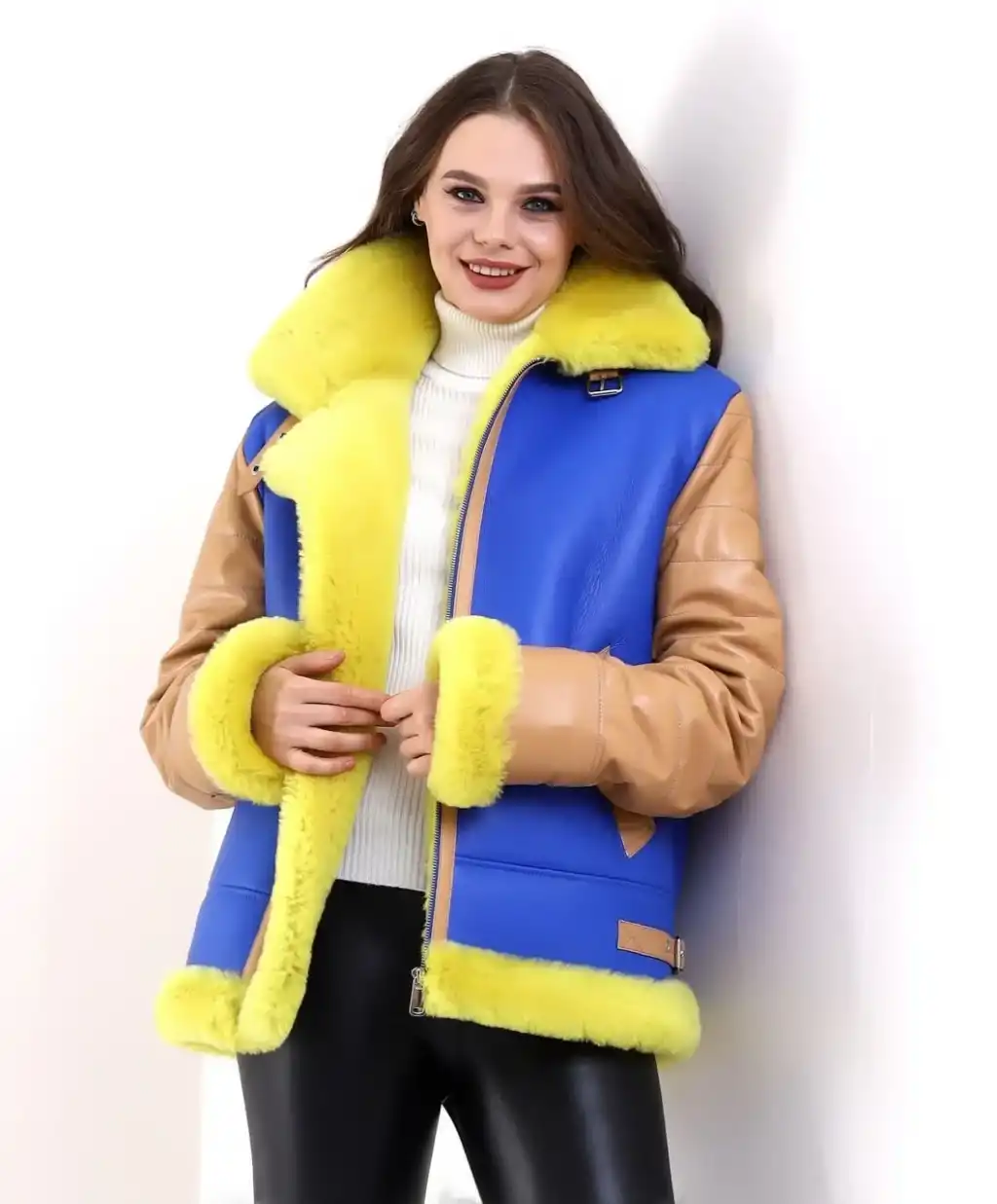 Kadın Koyun Derisi Pilot Hakiki Kürk - Sarı
