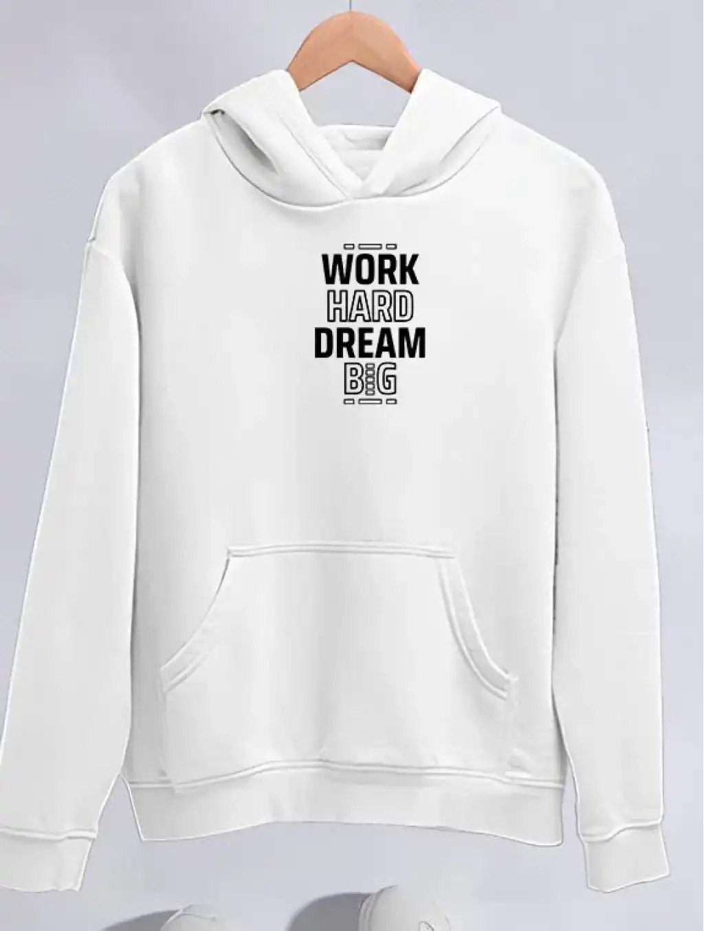 Kadın Kapüşonlu Üç İplik Sweatshirt – Beyaz Strong Heykel Baskılı, Rahat Kalıp, Kanguru Cepli Modern Tasarım