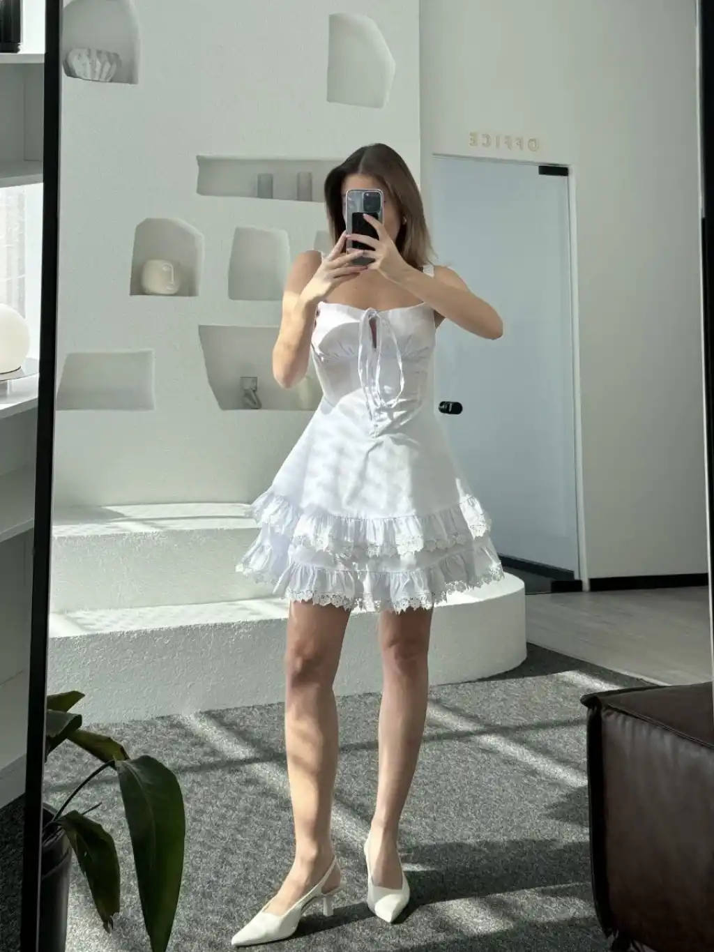 Mini Askılı Elbise - Beyaz