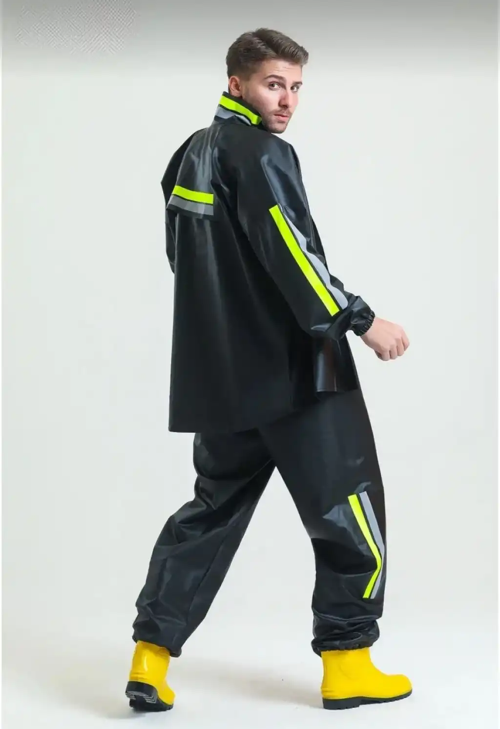 Premium Motorcu Kurye Yağmurluk Takım Su Geçirmez PVC Kumaş Reflektörlü TÜBİTAK Onaylı - Siyah