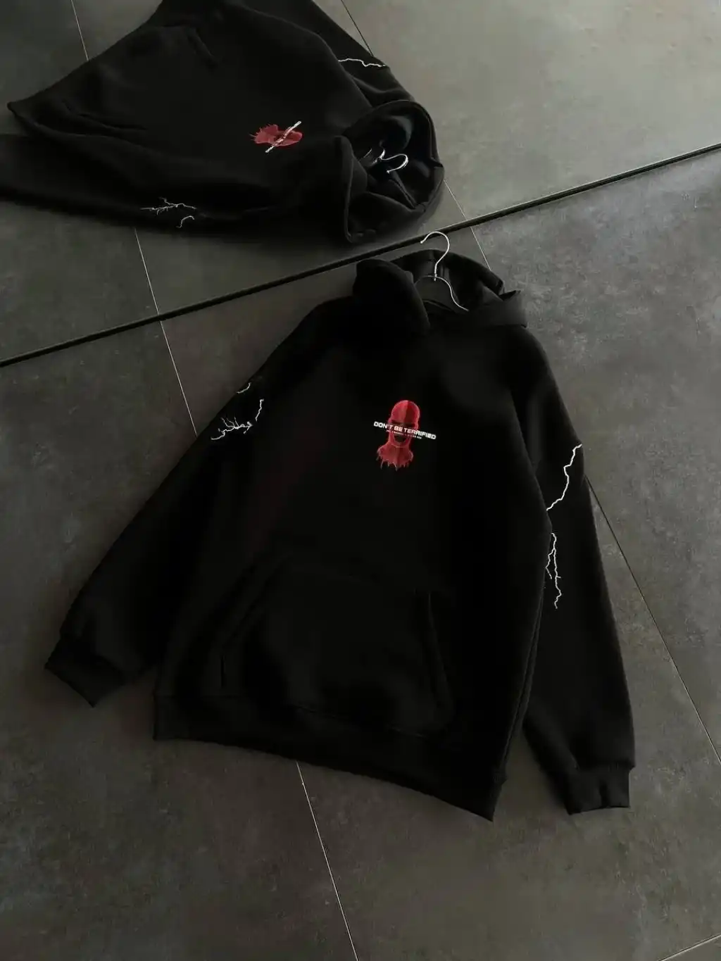 • Üç İplik Kapüşonlu Baskılı Oversize SweatShirt- Siyah