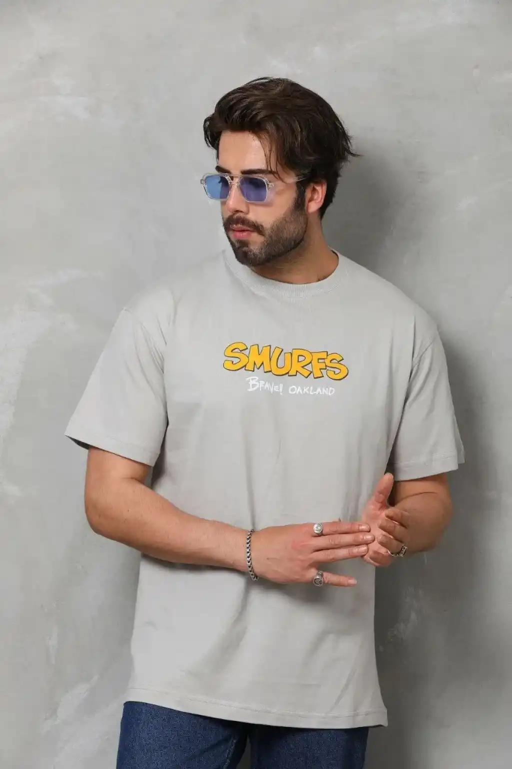Erkek Oversize Baskılı Tişört – Golf GTI Retro Araba Desenli, Ön & Arka Dijital Baskı, Sokak Modası Stil - Gri