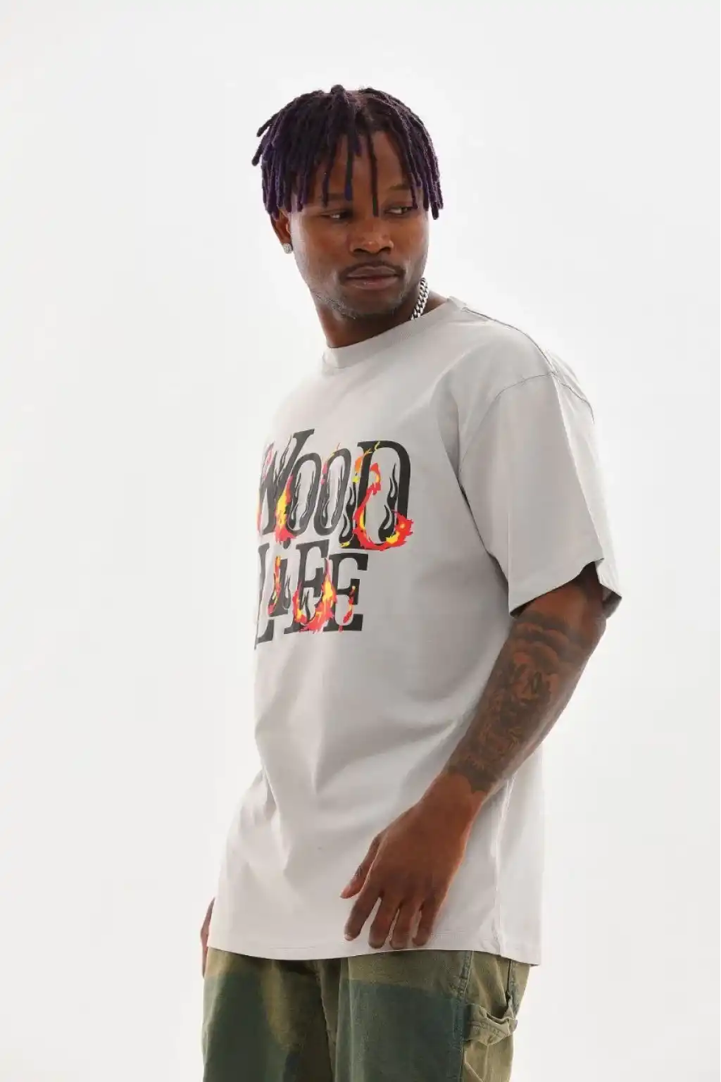 Erkek Oversize Baskılı Tişört – Golf GTI Retro Araba Desenli, Ön & Arka Dijital Baskı, Sokak Modası Stil - Gri
