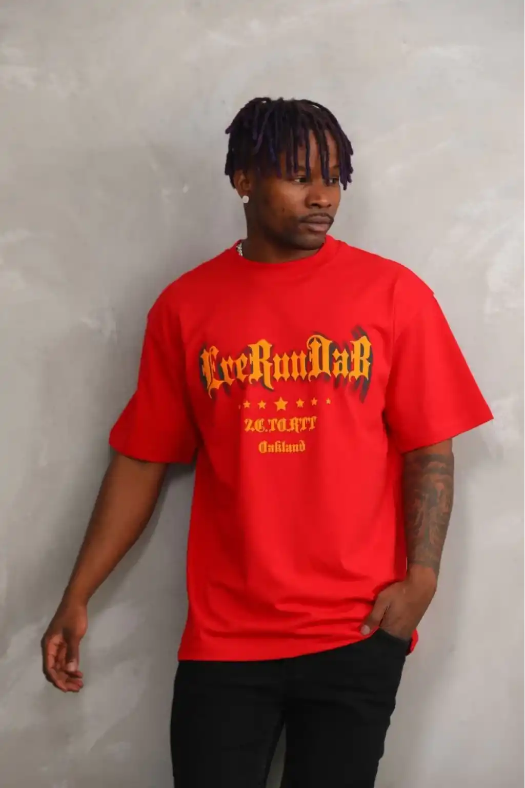 Unisex Baskılı Oversize T-Shirt - Kırmızı