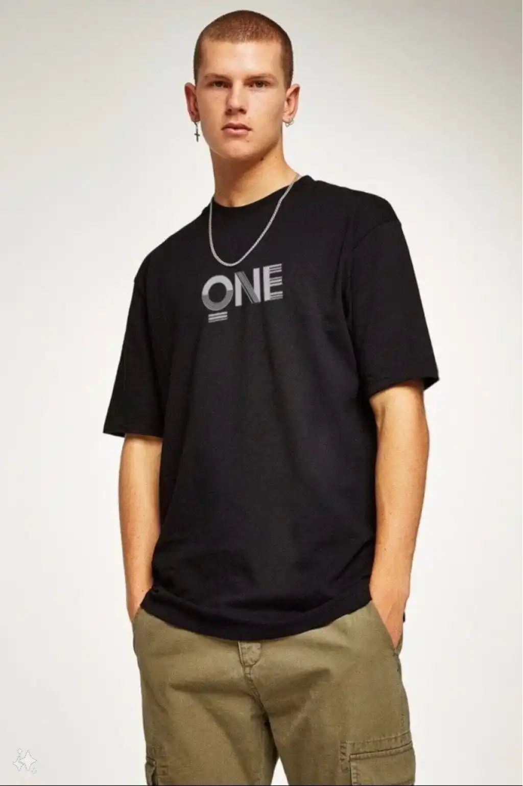 Unisex Baskılı Oversize T-Shirt - Siyah