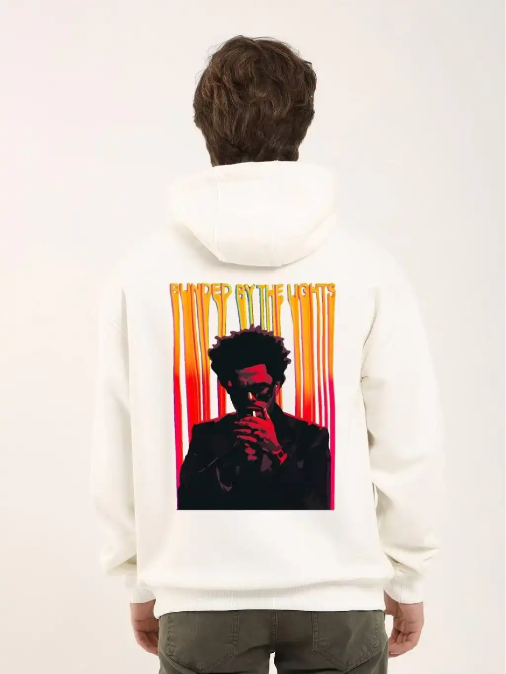 Erkek Oversize Kapüşonlu Sweatshirt – Beyaz Renk Üç İplik İçi Pamuklu Kanguru Cepli Baskılı Hoodie Rahat Kalıp Kışlık Günlük Kombinlere Uygun - Beyaz