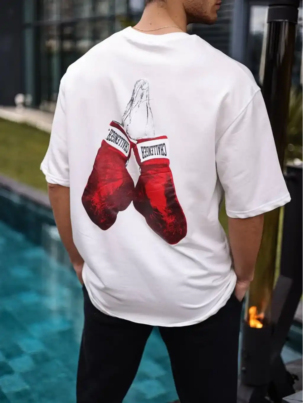 Eşsiz Baskı Tasarımlı Şık Büyük Beden Erkek Tişörtü - Rahat Polyester, Makinede Yıkanabilir, Yuvarlak Yaka - Her Mevsim İçin Mükemmel - Beyaz