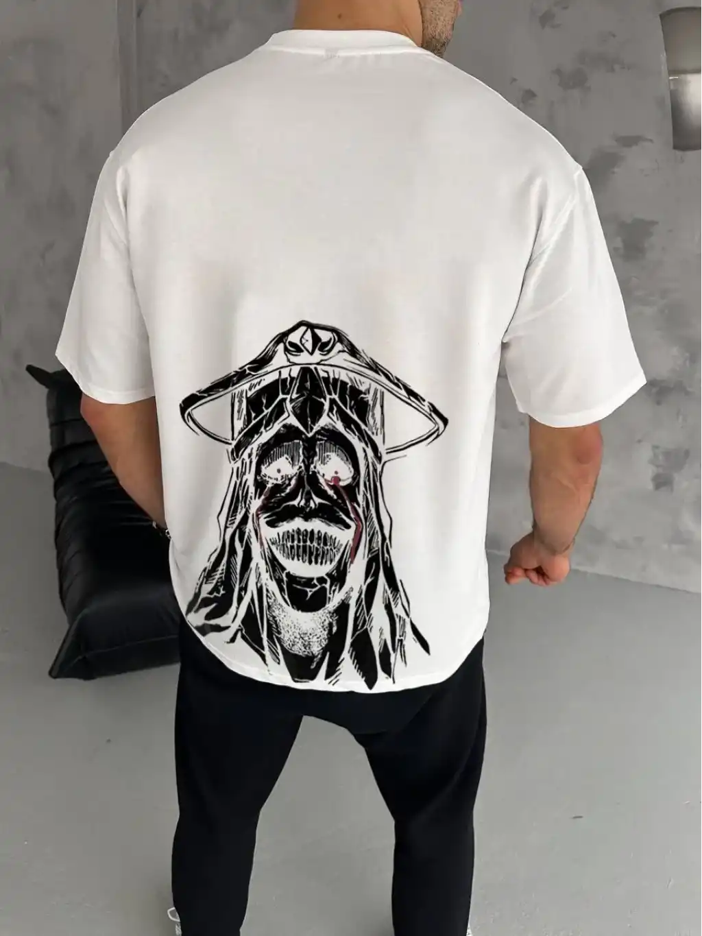 Erkekler için Siyah Tişört Grafik Genç Emo Vintage Gotik Rahat Büyük Beden Kısa Kollu Tişört Giysi Üst - Beyaz