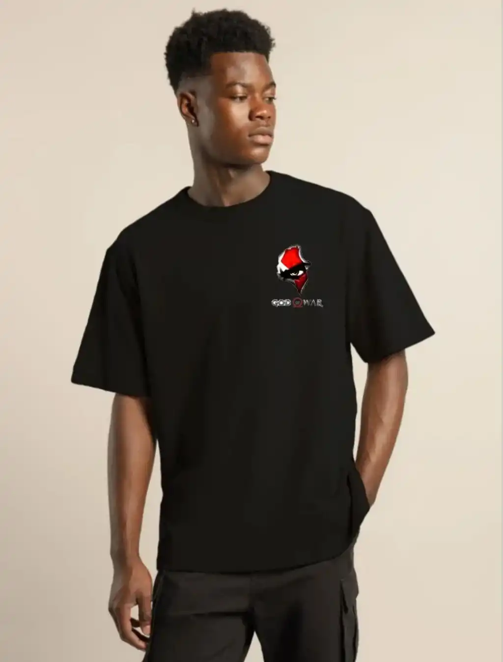 Benzersiz Sırt Baskılı Erkek Sokak Stili Bol Tişört - Nefes Alabilir Polyester, Makinede Yıkanabilir - Siyah