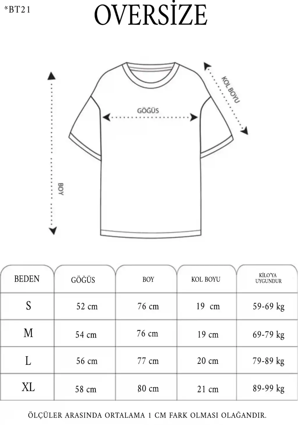 Unisex Bisiklet Yaka Baskılı Oversize T-Shirt - Siyah