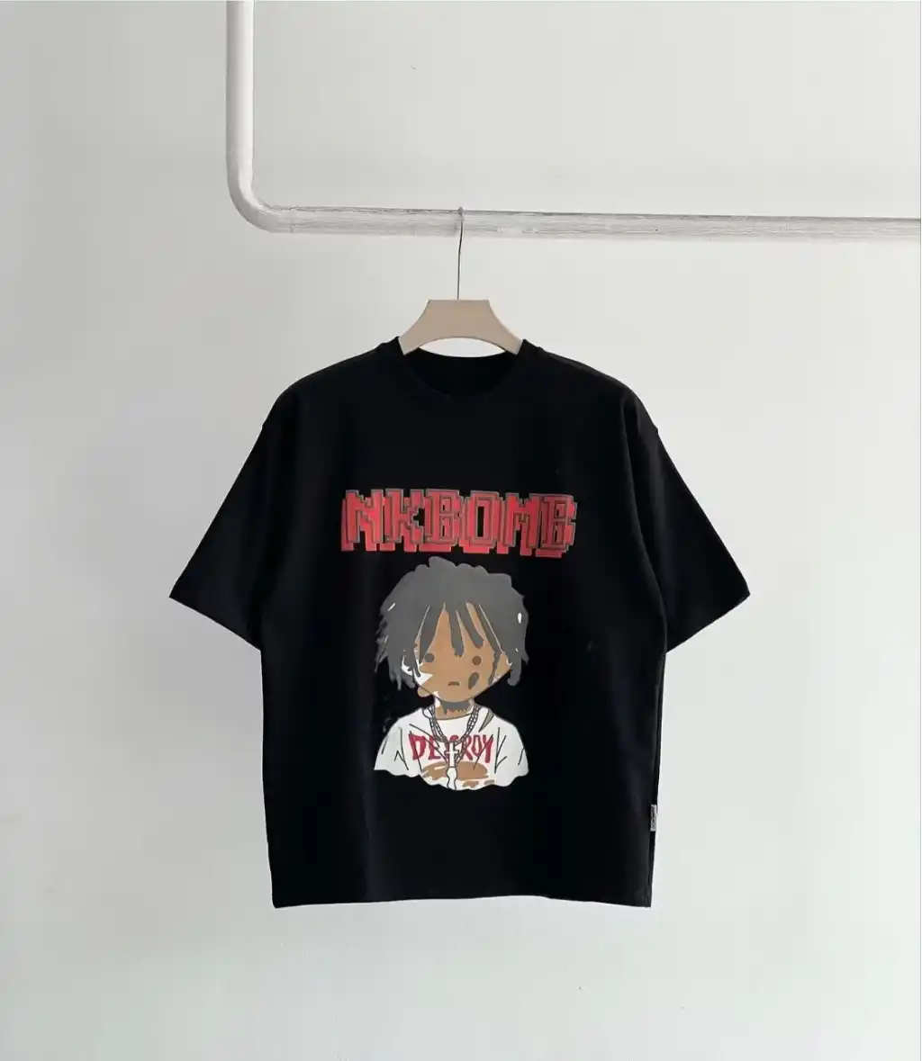 Unisex Bisiklet Yaka Kısa Kol Baskılı T-Shirt - Siyah